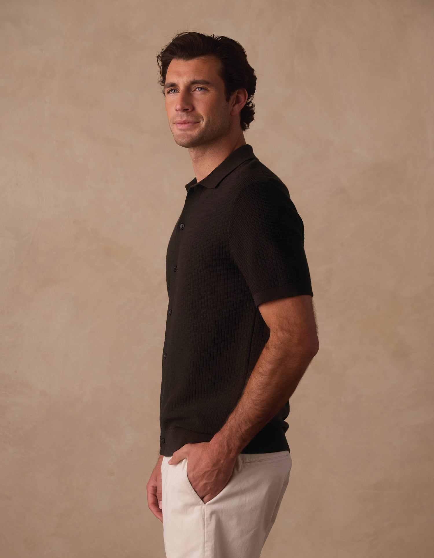 The BreezeKnit Button Up delivers a relaxed take on a classic knit shirt. Made from BreezeKnit—a breathable cotton-blend yarn with a soft, lightweight feel—the fabric stretches comfortably with reliable recovery to keep its shape through wear. A novelty waffle stitch adds subtle texture, while rib finishes at the collar, cuffs, hem, and center-front placket give it a clean, structured feel. The true-to-size fit keeps things easy, making it a dependable option for days when you want something comfortable that still looks pulled together.