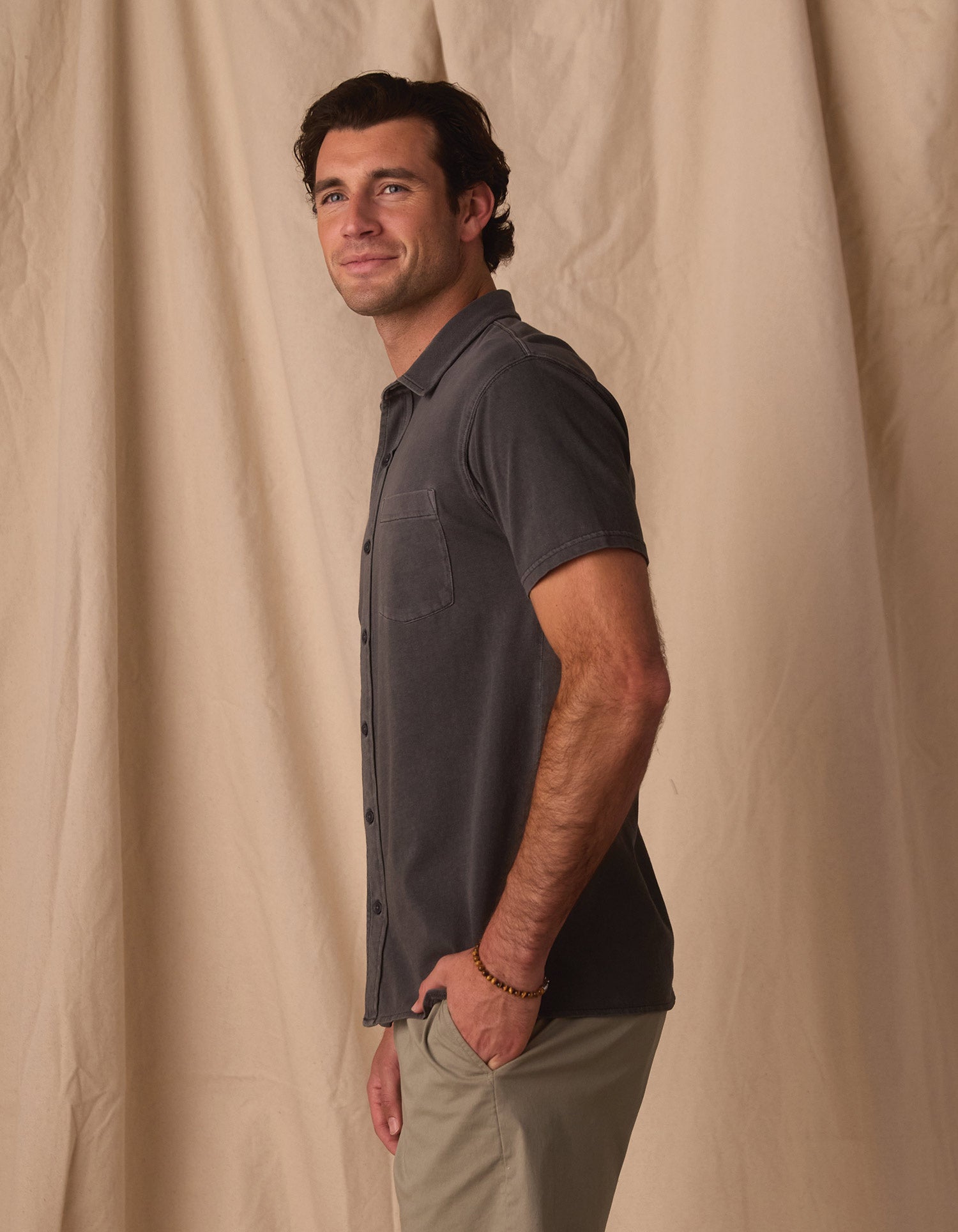 The Normal Jersey Short Sleeve Button Up is a relaxed take on a classic shirt. Cut from our soft, familiar T-shirt jersey, it keeps the feel comfortable and broken-in from the first wear. The true-to-size fit stays easy through the day, while a traditional shirt collar, full button front, and durable double-needle stitching give it a clean, finished look. It’s a dependable option when you want the comfort of a tee with a bit more structure.
