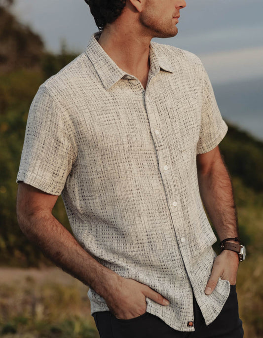 • Freshwater Short Sleeve Button Up Shirt in White Nep
