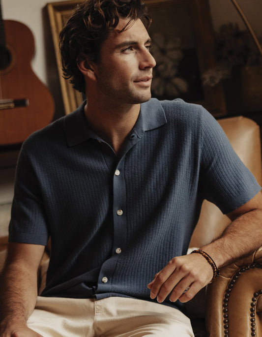 • Textured Knit Shirt in Vintage Blue