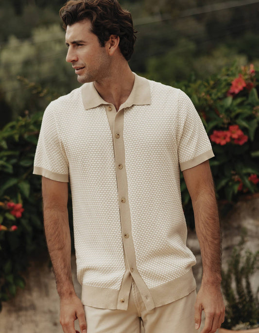 • Robles Birdseye Knit Camp Button Up in Cream/Grey