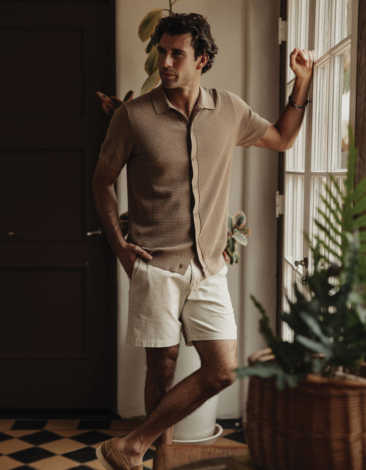 • Robles Knit Jacquard Button Up in Ivory/Khaki