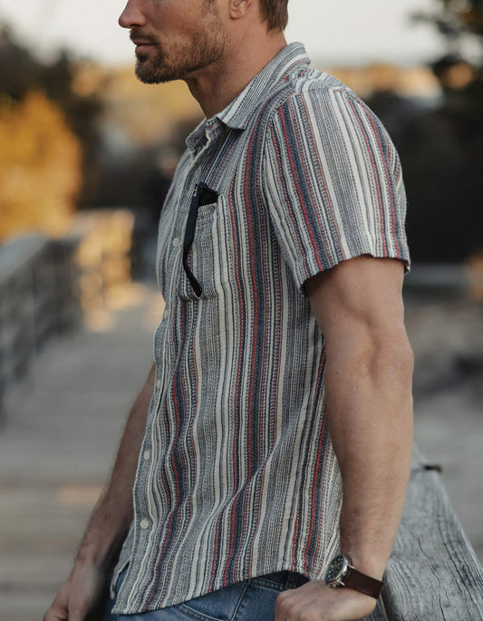 • Freshwater Short Sleeve Button Up Shirt in Americana Stripe