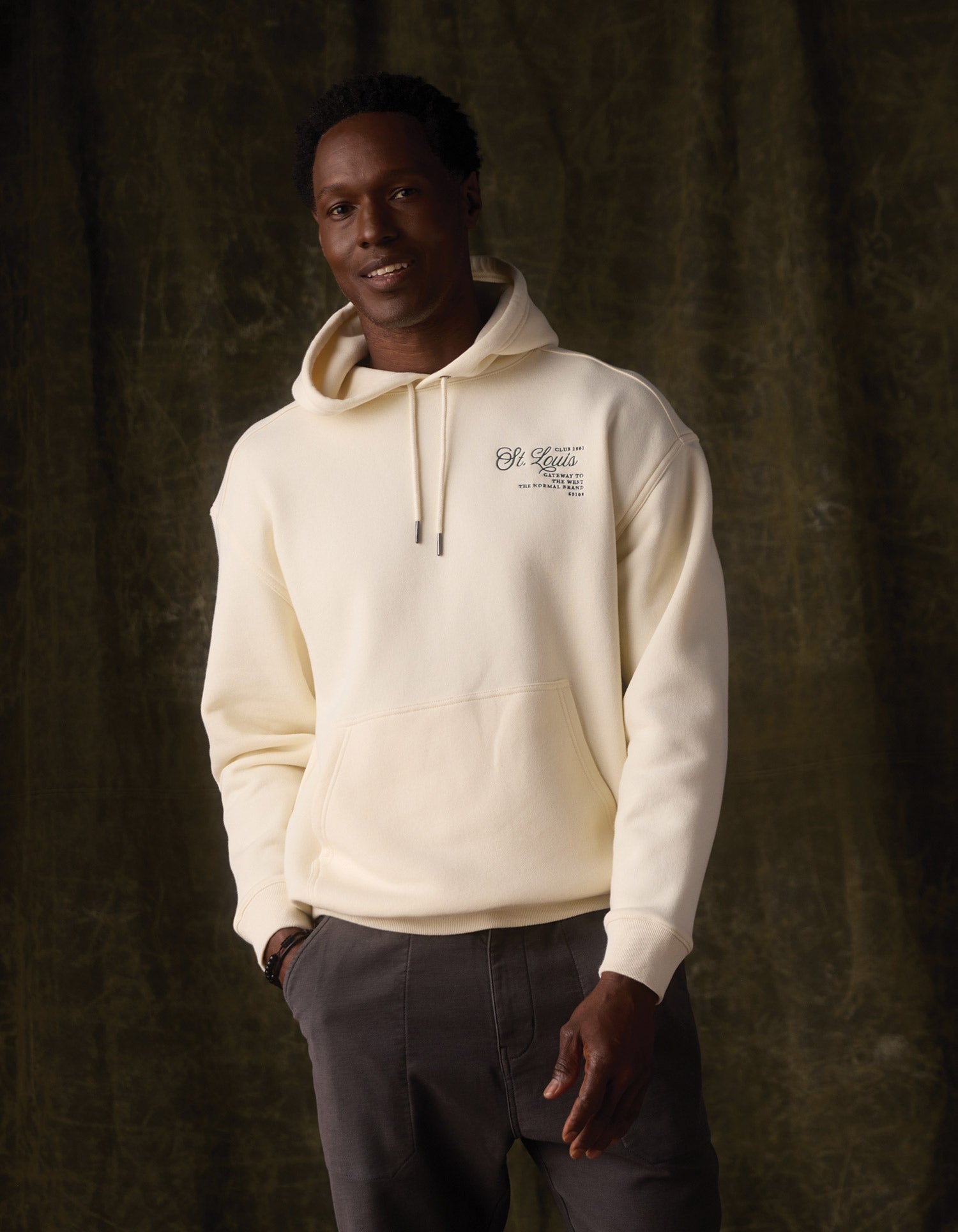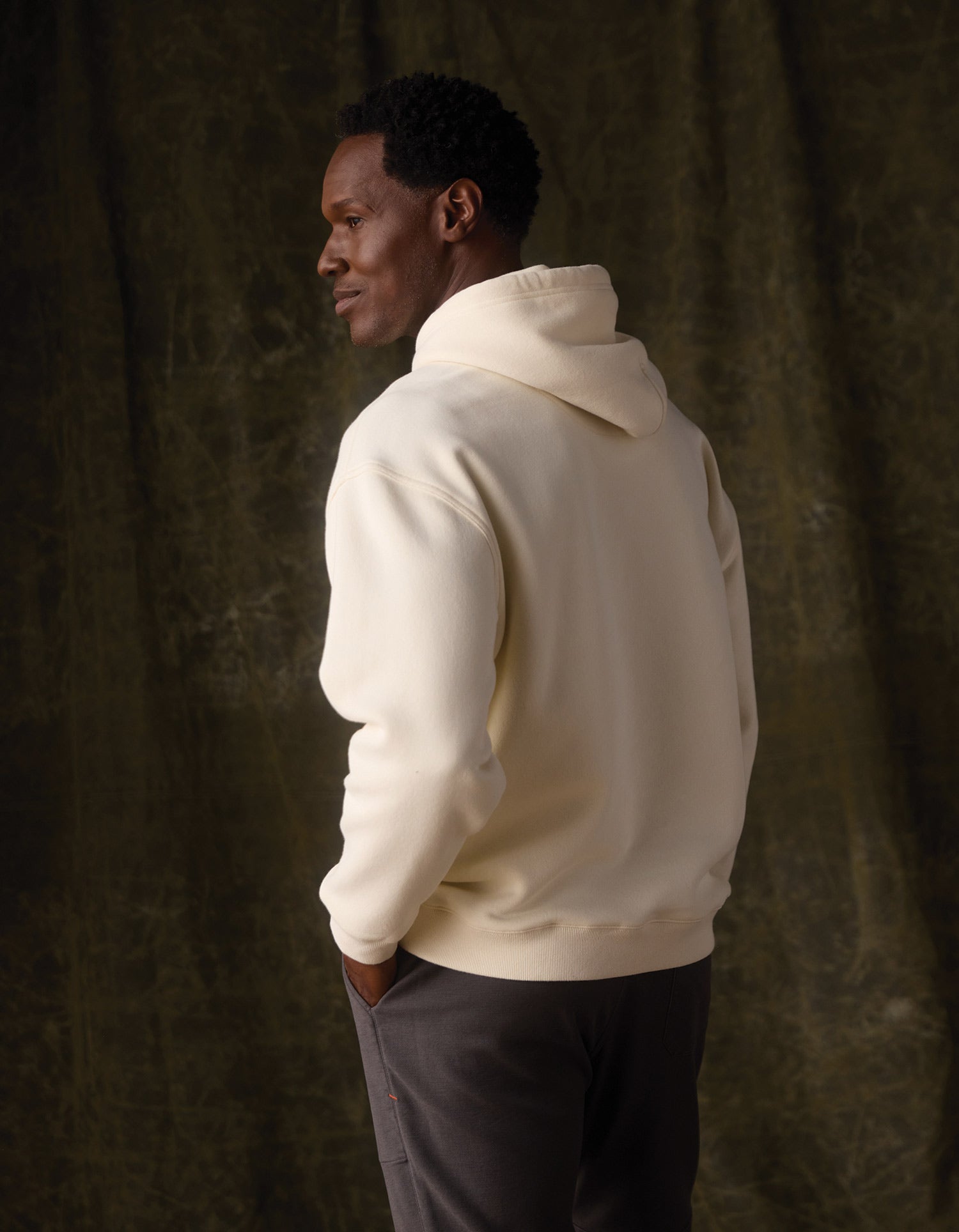 The Normal Fleece Graphic Hoodie pairs a sueded face with a classic fleece interior for warmth and softness that lasts all day. Designed with a relaxed fit, it features a 2-ply hood with drawstrings, chest embroidery, and a kangaroo pocket. Dropped shoulders, ribbed cuffs and hem, and engraved metal drawcord tips complete the look.