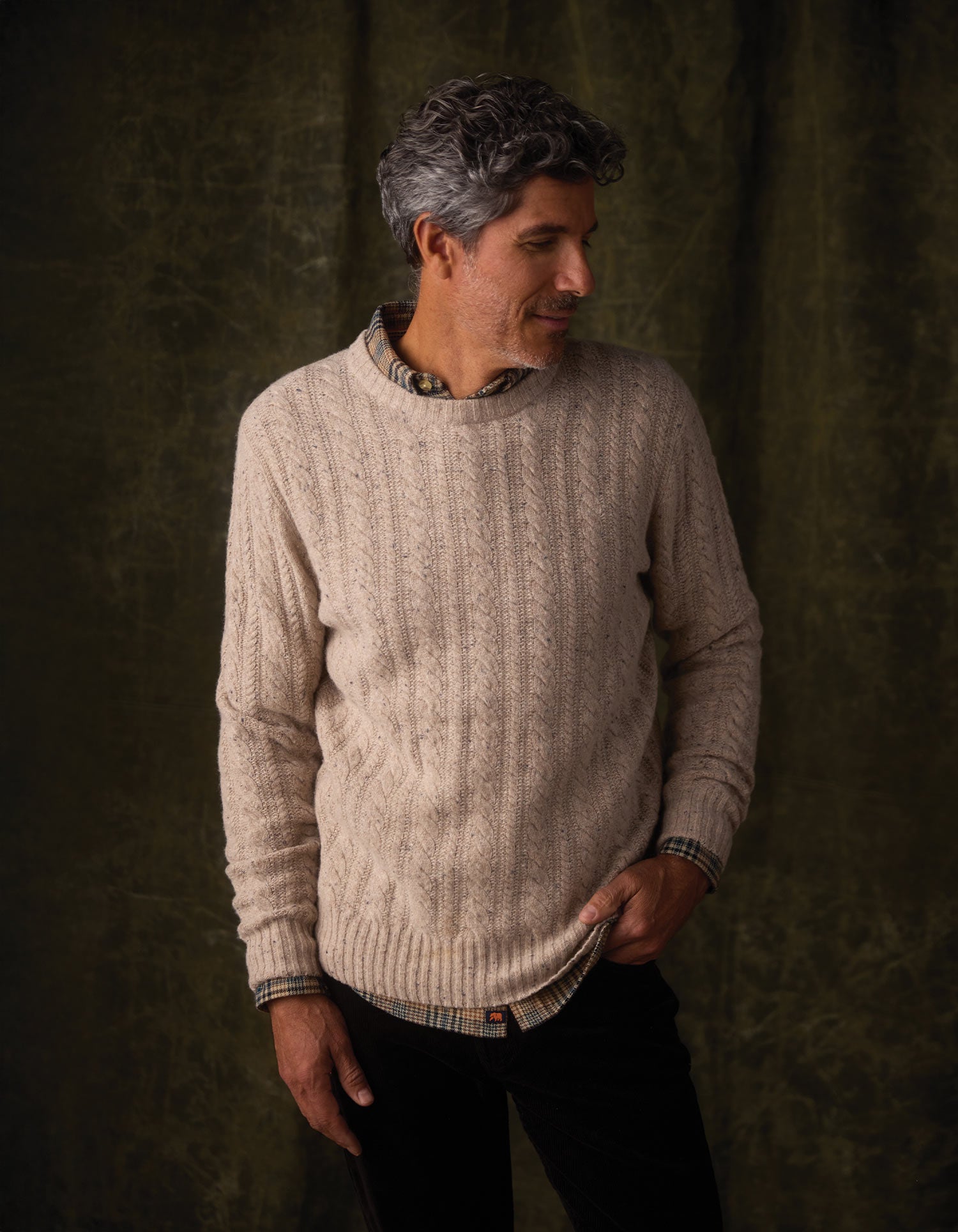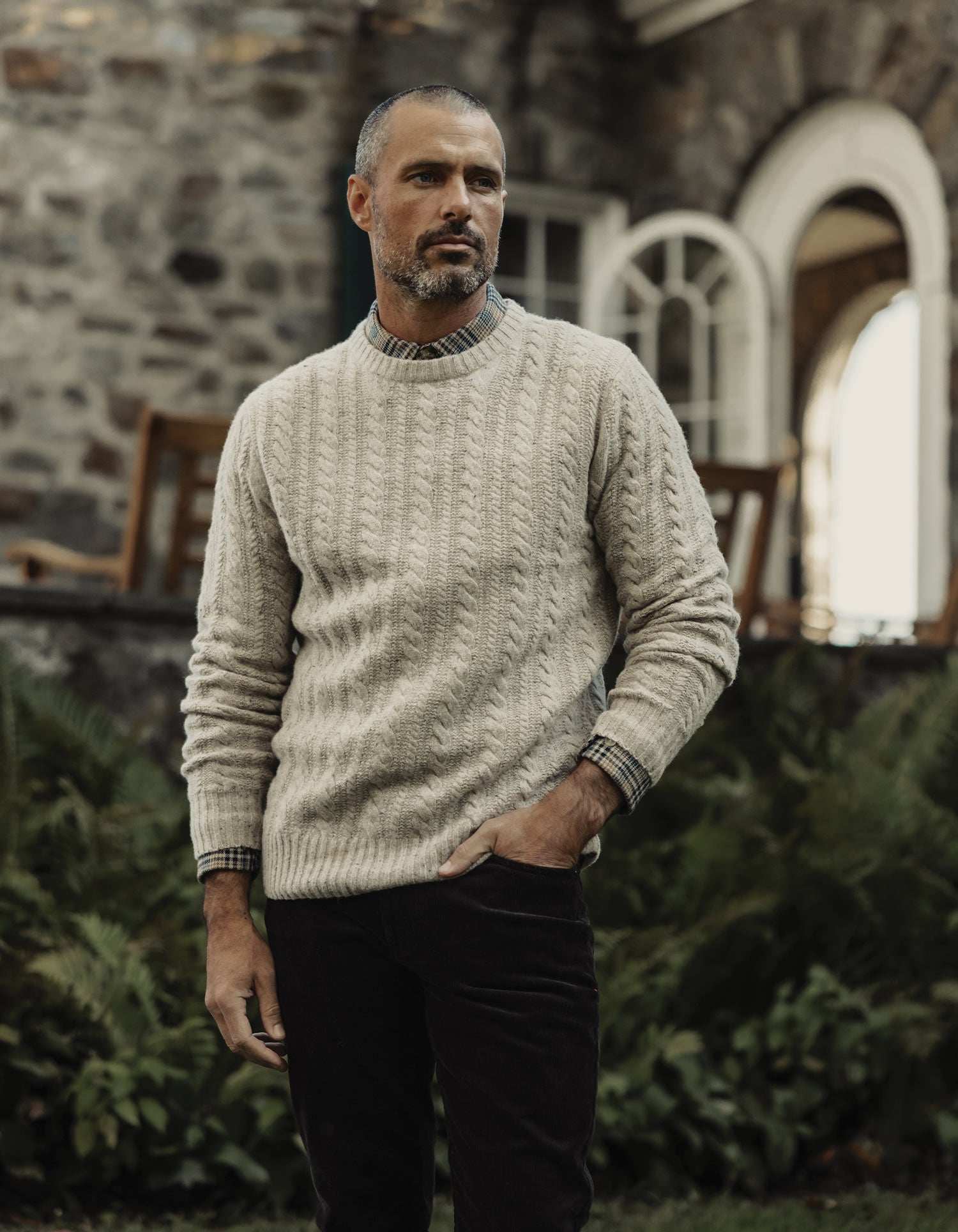 The Kennedy Cable Crew has that classic wool look with a natural texture that gives it extra character. It’s warm, timeless, and easy to wear—finished with all-over cableknit, rib edges, and our signature suede bear tag.