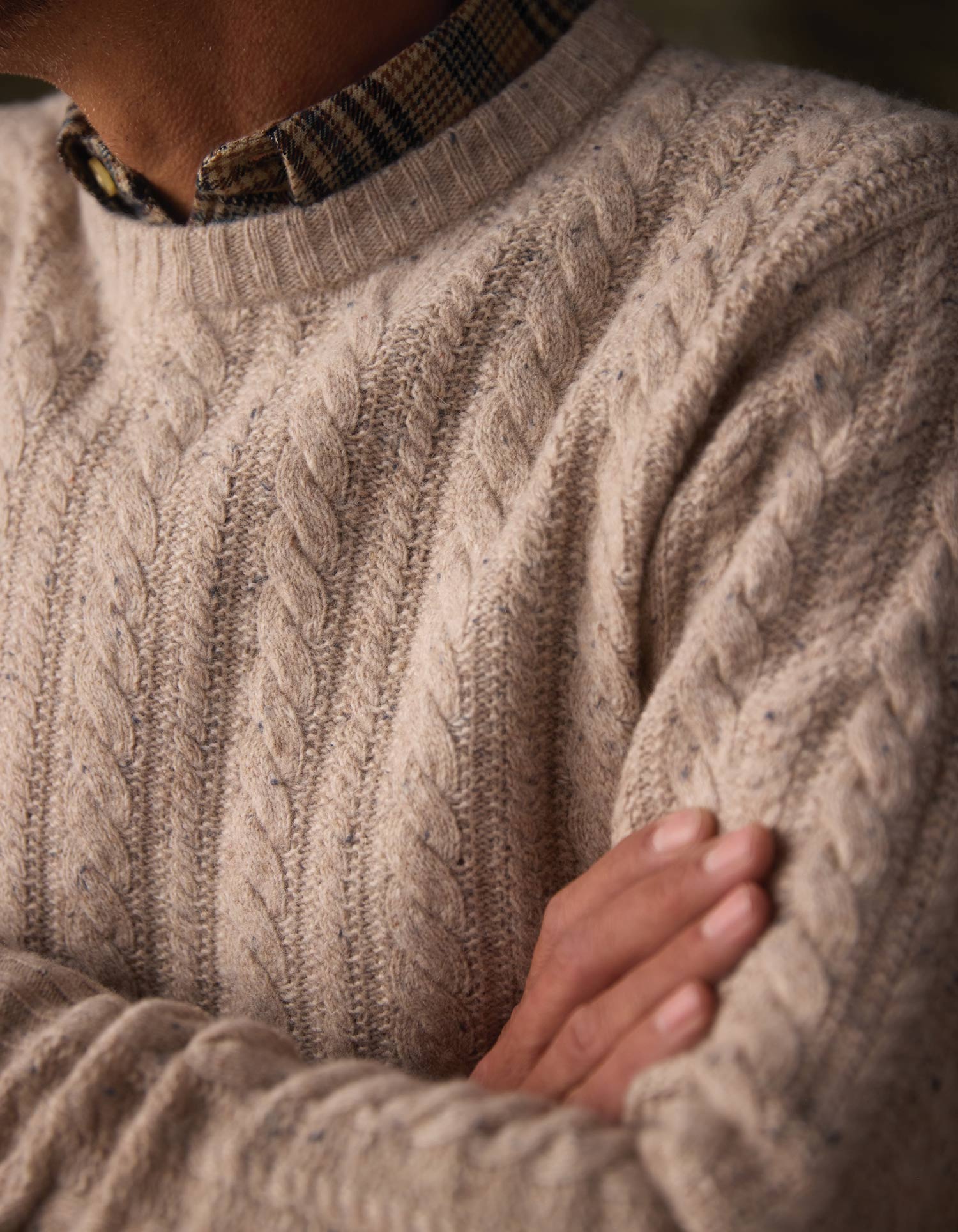 Nep Detailed Cable Sweater Knit. Wool hand.