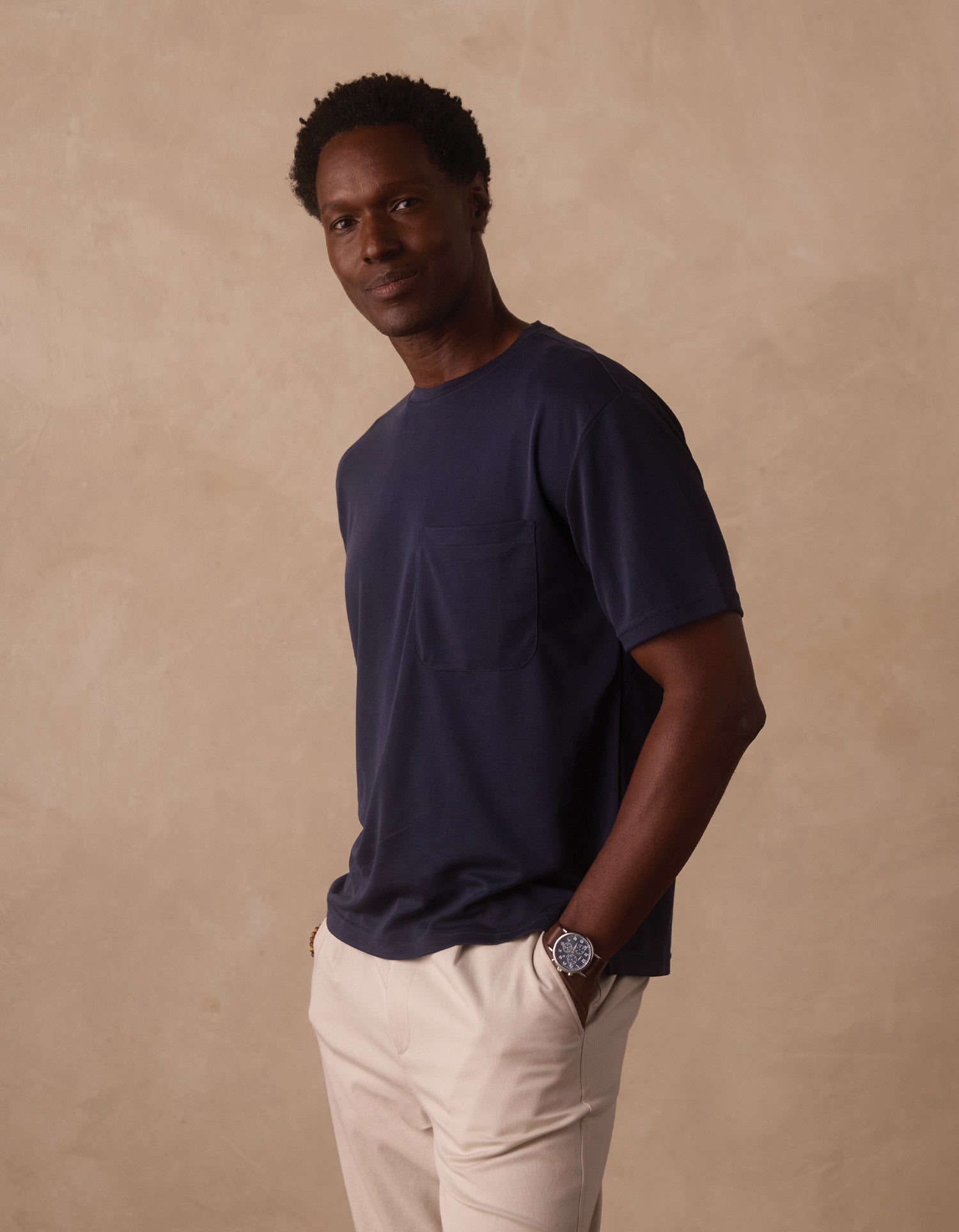 The Laidback Tee is an easy essential built for everyday comfort. Cut from a modal-blend jersey, the fabric feels exceptionally soft and smooth with a lightweight, breathable feel that wears well through the day. The relaxed fit keeps the silhouette easy without feeling oversized, while the subtle structure of the fabric helps it hold its shape. Finished with a chest pocket for a classic touch, it’s a dependable go-to when you want all-day comfort.