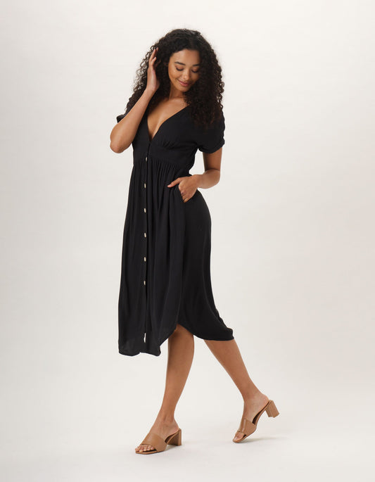 Sale Sold outEzra Crepe Deep V Button Thru Dress