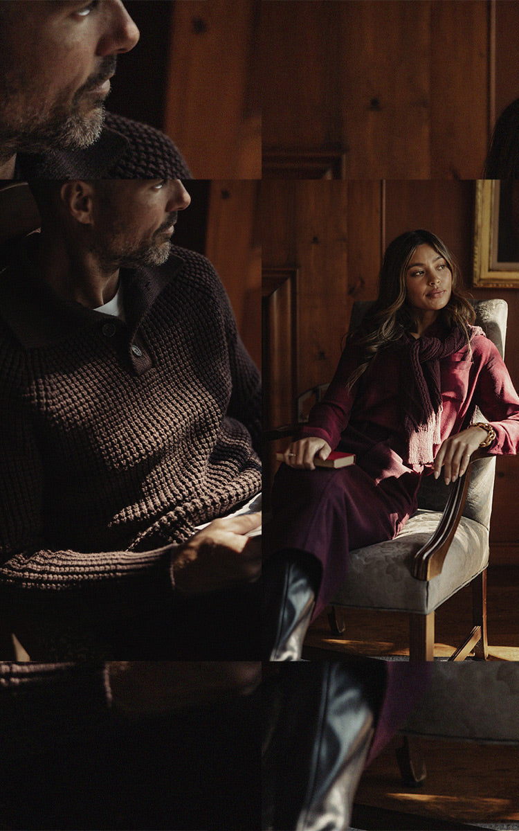 This collection was inspired by the quiet moments at home—slow mornings, crackling fires, and the comfort of staying in. Soft textures and lived-in layers offer warmth without effort, with thoughtful details that feel familiar from the first wear. These are the pieces you’ll settle into, season after season.