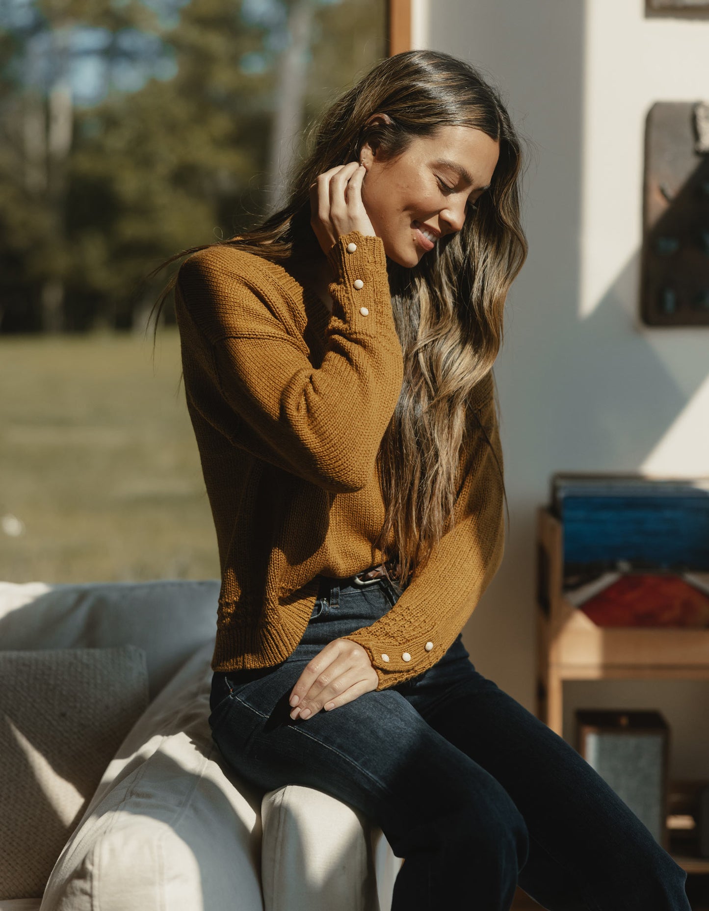 Intricate and stylish. Made from 100% acrylic, this sweater has a super soft handfeel and a loose jersey knit with novelty stitching at the cuffs and bottom band. It's slinky with a boxy fit that hits at the high hip for a flattering silhouette. The ornamental placket at the sleeve cuffs gives this sweater a sweet, elevated look.