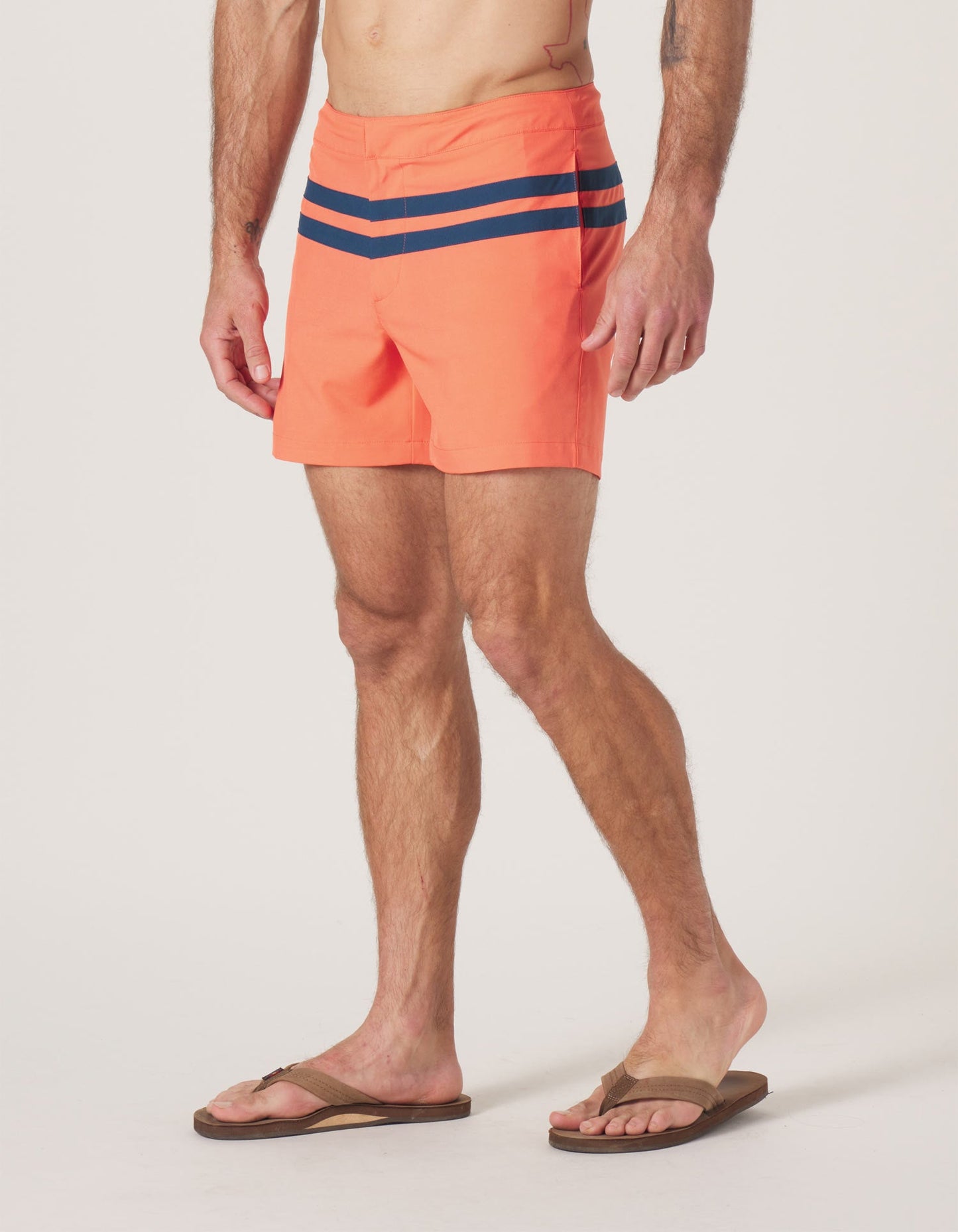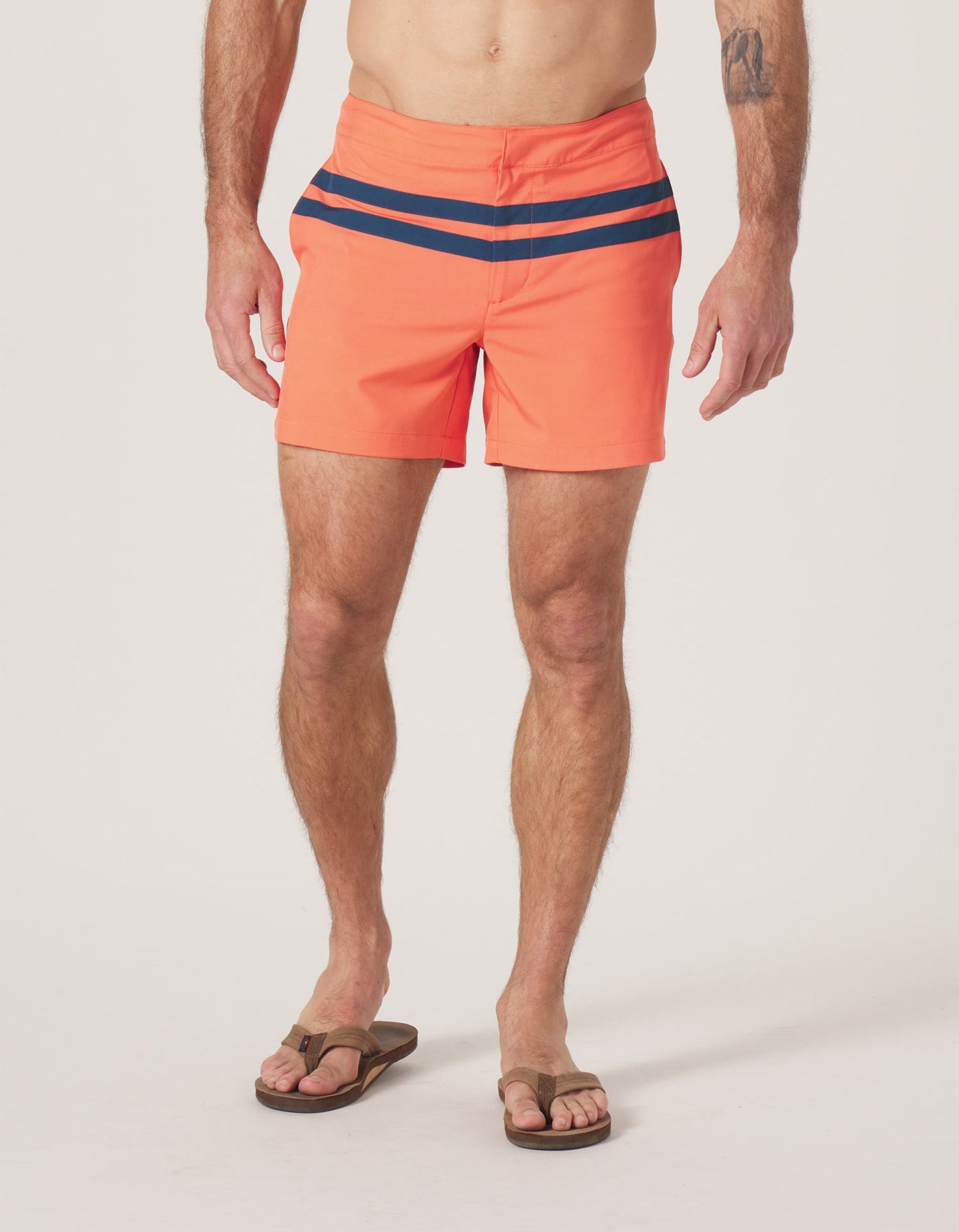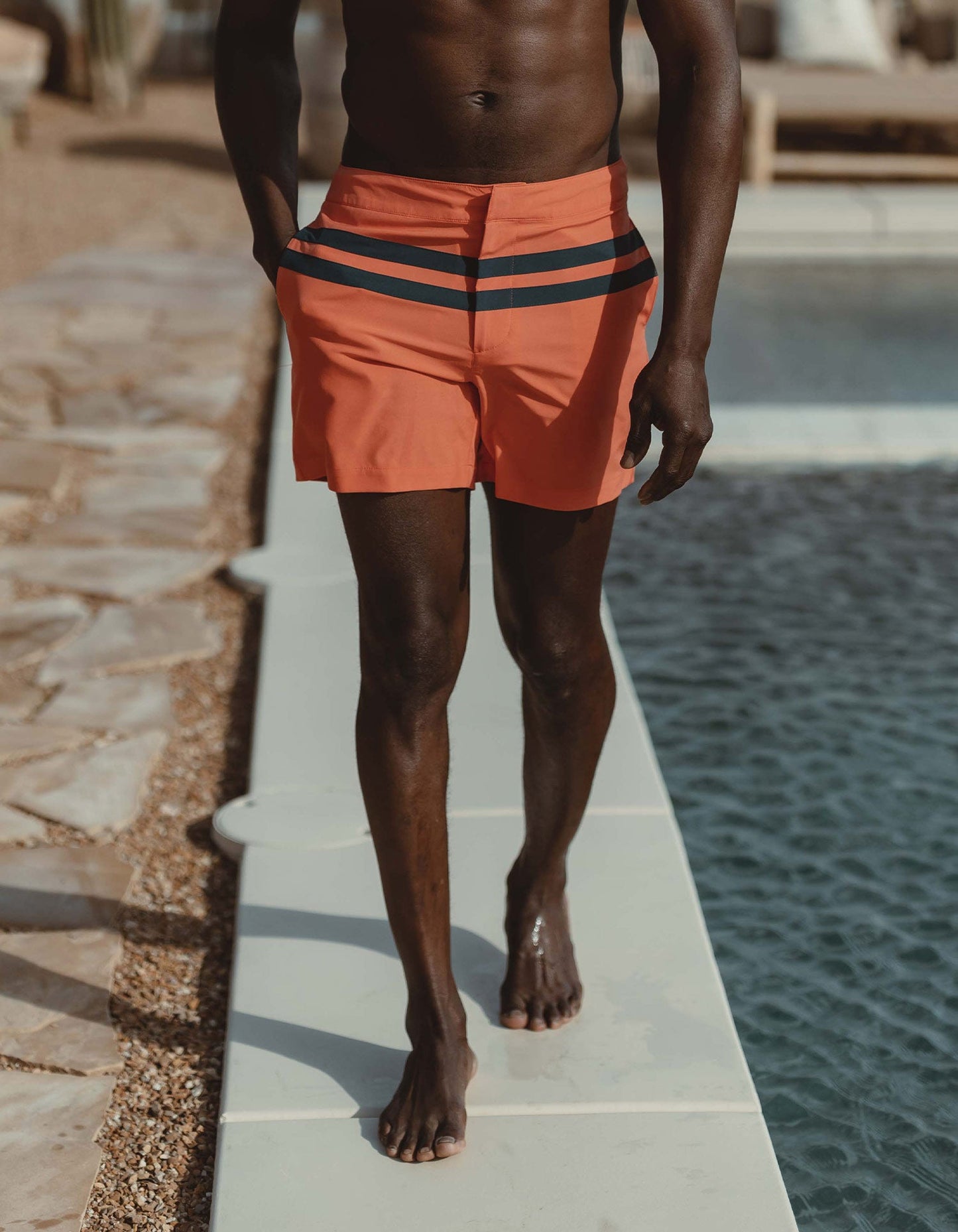 Get a tailored look, without compromising on your ability to move. These button front trunks have a shorter inseam for a sophisticated look, and with enough stretch to make sure you can still hit the waves. Fully functional mesh pockets with zipper closures, and a hidden snap and zipper make these trunks as functional as they are flattering.