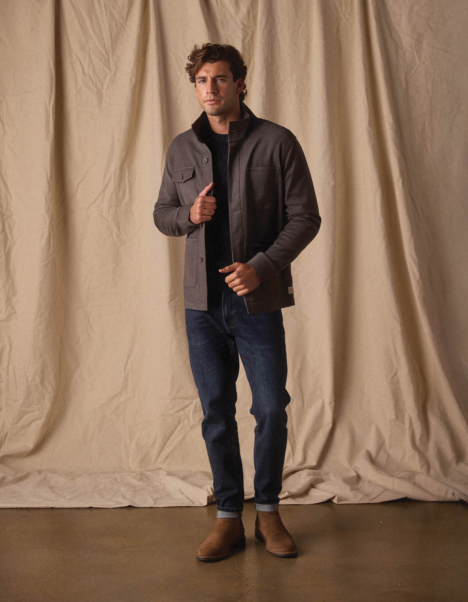 Comfort meets getting down to business in this unconventional take on the classic chore coat. Sturdy and softly structured, hopelessly soft and comfortable like your favorite pair of sweats. Pairs well with crewneck tees and getting stuff done.