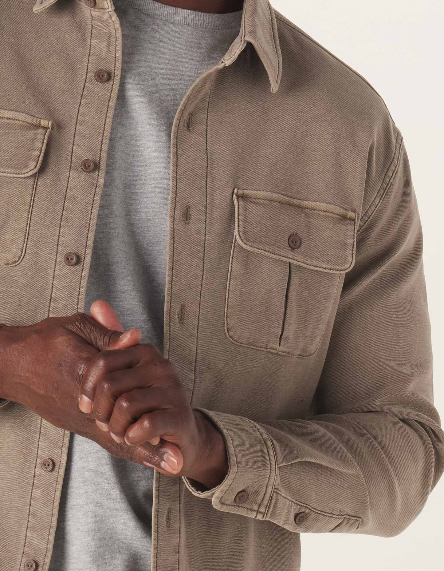 - BNBrooks N.Verified BuyerReviewingComfort Terry Shirt Jacket in TaupeI recommend this productWhat is your Weight? 170-189 lbsWhat is your height? 5' 9"What is your usual clothing size? MWhat size did you purchase? MWhat is your age? 36-45Rated 5 out of 5 stars3 minutes agoGreat shirt