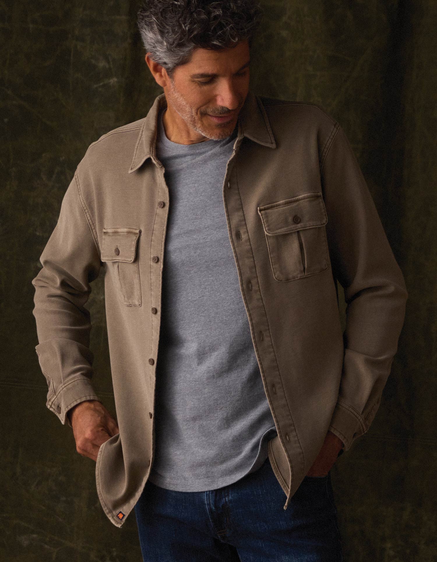 Sweats and chinos had a baby, and it's called Comfort Terry. This fabric is smooth and polished on the outside, plush and comfy on the inside. Nobody needs to know you're wearing something that's as comfortable as your favorite hoodie. Layer the terry shirt jacket with a shirt and sweater, or on its own with your favorite pair of jeans.