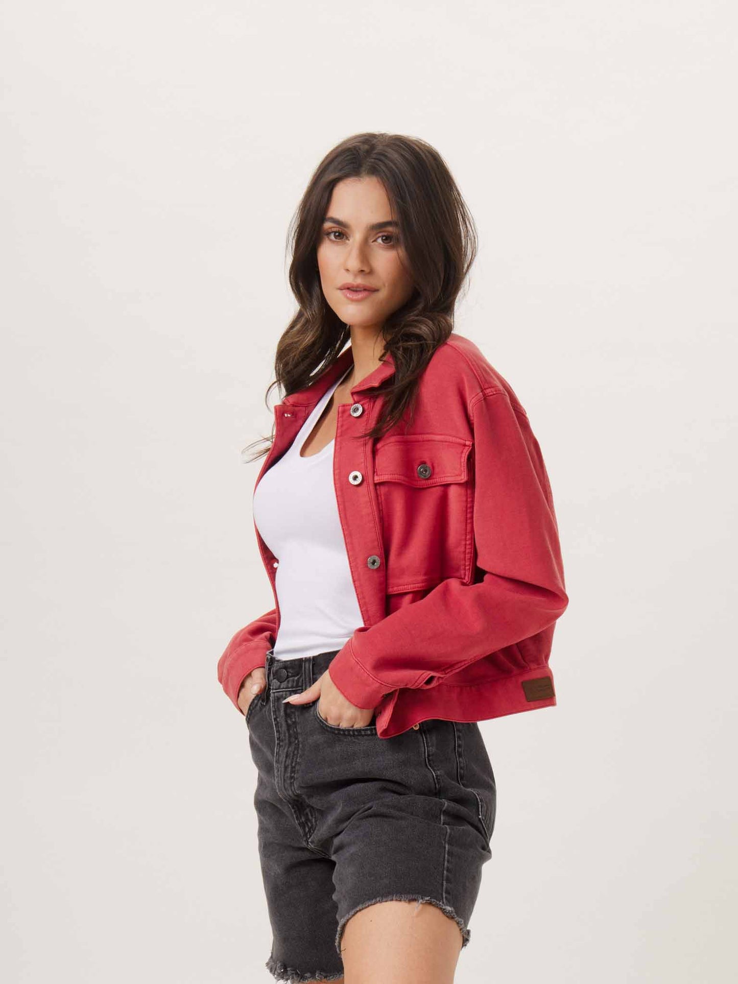 When you want to be tough, but you live in your sweats, this jacket has you covered. With a hopelessly soft feel and a deceptively rugged look, nobody will know you're so comfortable in a jacket like this. The Comfort Terry Trucker Jacket has the iconic cut of a trucker jacket with the feel of your favorite pair of sweats, with a boxy silhouette and a vintage color wash. Pair it with a sundress or your favorite tee and leggings, this jacket is good with either.