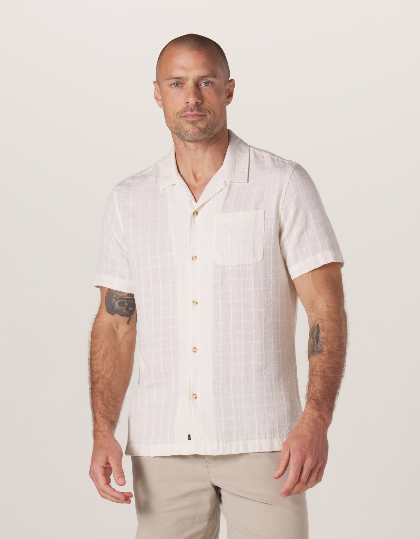 Effortless and breezy. The Freshwater Camp Shirt features a true-to-size fit that provides both comfort and a flattering silhouette. Key details include a 2-ply collar and button placket, two-needle flat felled seams at the armholes, a hi-low hem with side vents, and engraved buttons for a refined finish. Pair it casually with shorts and sandals or dress it up with trousers for a polished look.