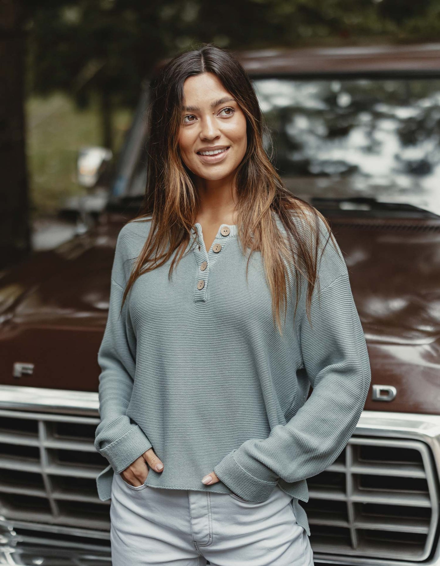Love this Henley sweater! Super well made, soft, lightweight, perfect for spring. Maybe ran a tad large (if I had to choose). Lovely color.