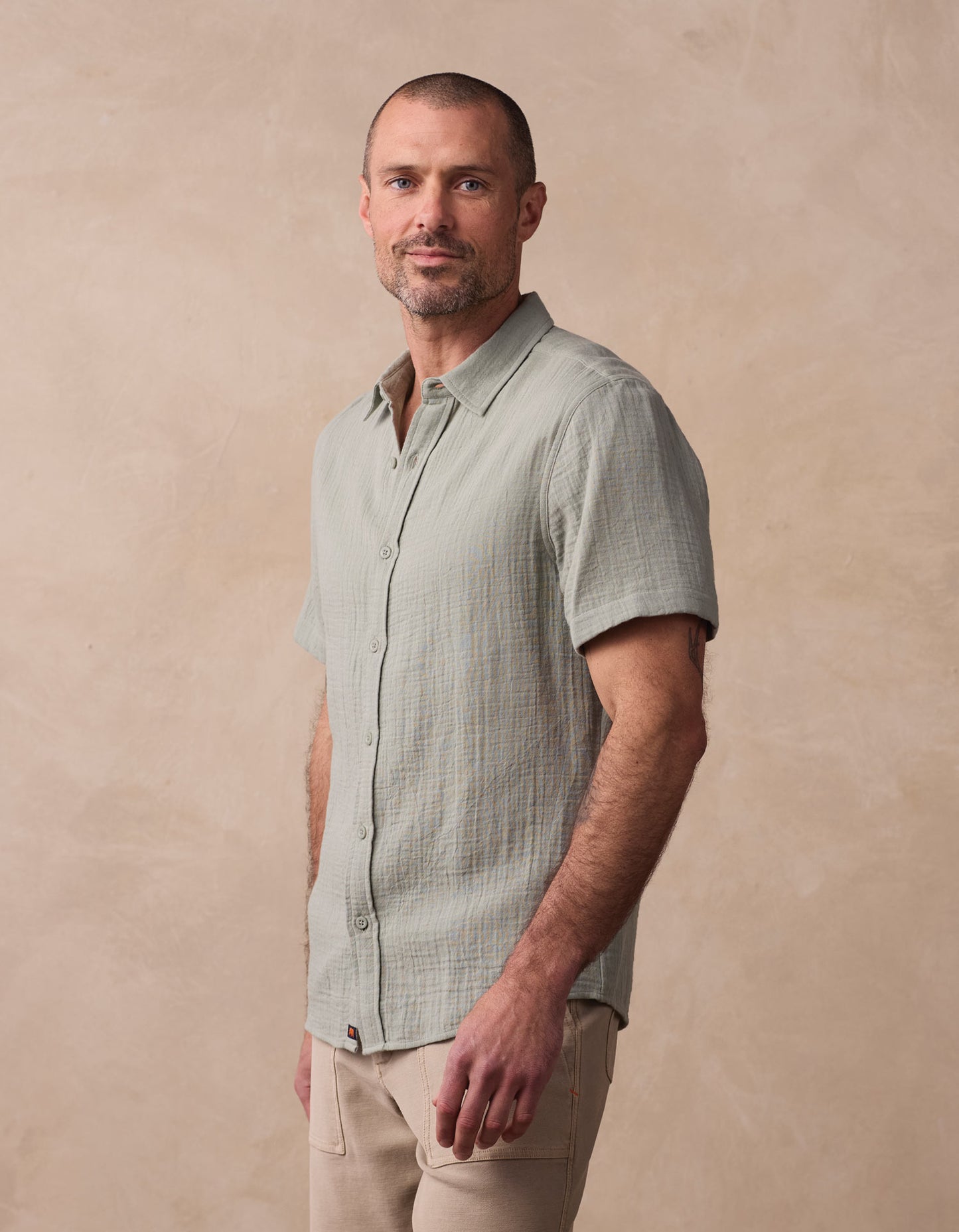 The Kalo Short Sleeve Button Up is a breezy warm-weather essential with a relaxed yet polished look. Made from 100% Cotton double gauze featuring a woven bubble texture, it offers an airy and comfortable feel. The true-to-size fit ensures effortless wear tucked or untucked. Details include a shirt collar with collar stand, full button front, back yoke with knife pleats, short inset sleeves, and a shirttail hem, making this top a versatile choice for laid-back days or casual outings.