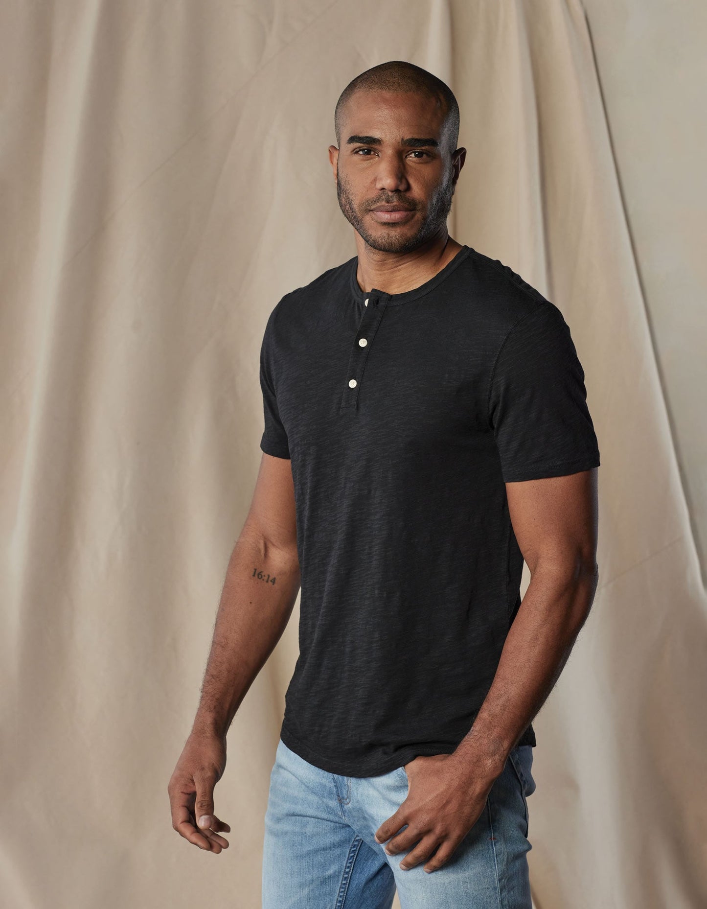 Crafted from 100% Cotton Slub Single Jersey, this lightweight fabric ensures easy wear while the distinctive slubs provide added visual texture, giving the tee a lived-in look. The 3-button henley design adds a touch of sophistication to this classic silhouette, making it a versatile choice for various occasions. With a subtle slub texture and garment dyeing for nuanced hi/lows, this tee strikes the ideal balance between a cool, relaxed vibe and an elevated aesthetic.