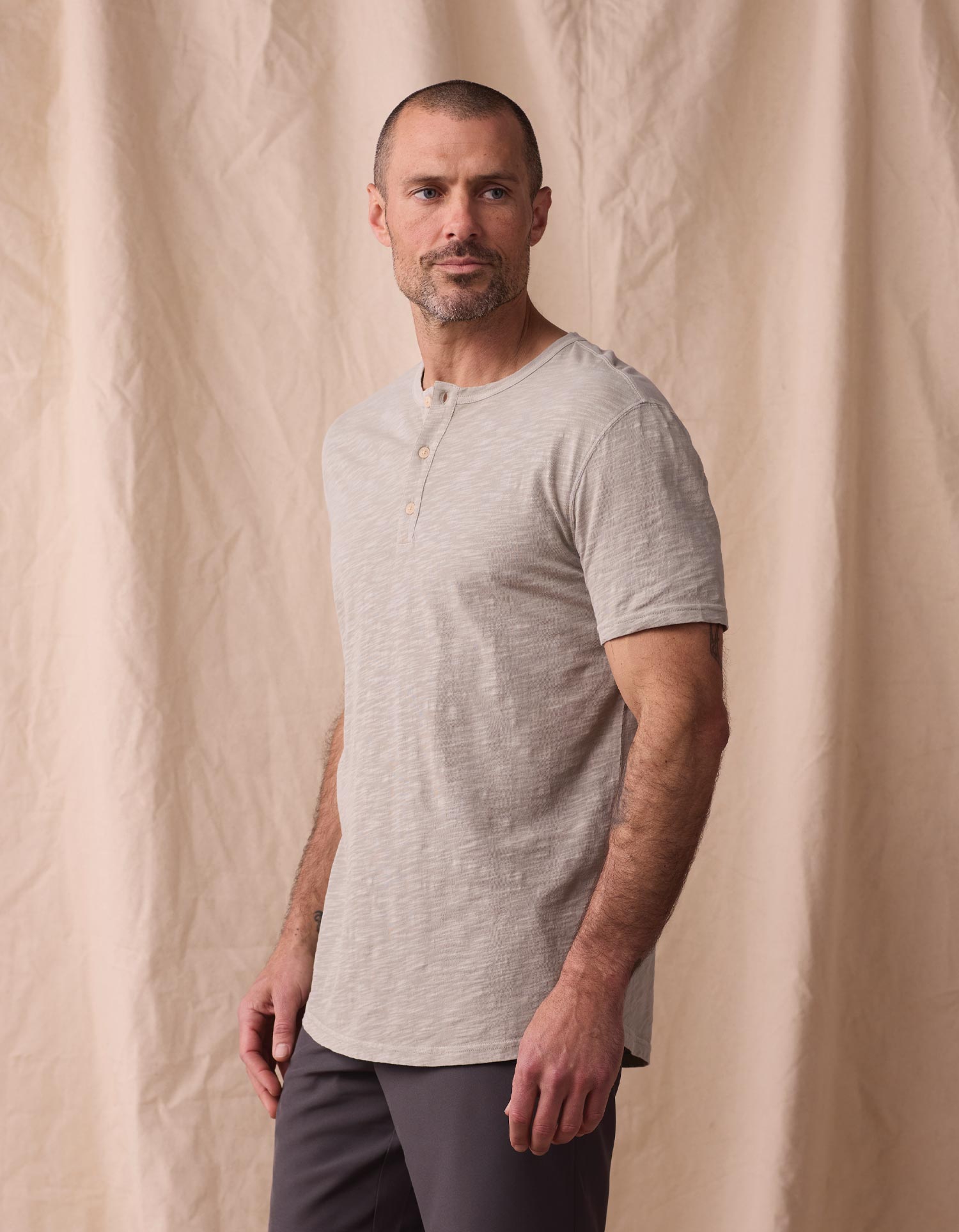 Crafted from 100% Cotton Slub Single Jersey, this lightweight fabric ensures easy wear while the distinctive slubs provide added visual texture, giving the tee a lived-in look. The 3-button henley design adds a touch of sophistication to this classic silhouette, making it a versatile choice for various occasions. With a subtle slub texture and garment dyeing for nuanced hi/lows, this tee strikes the ideal balance between a cool, relaxed vibe and an elevated aesthetic.