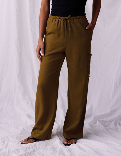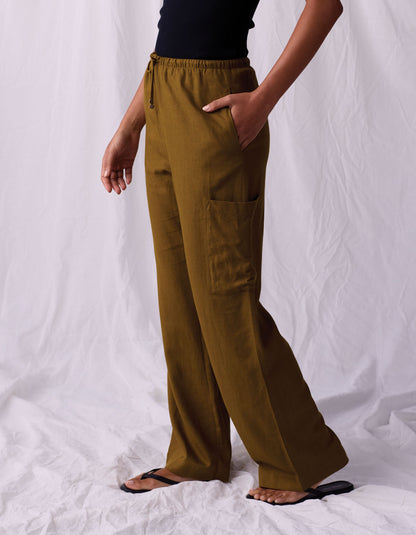 Leukos Linen-Blend Drawcord Pant in Tobacco