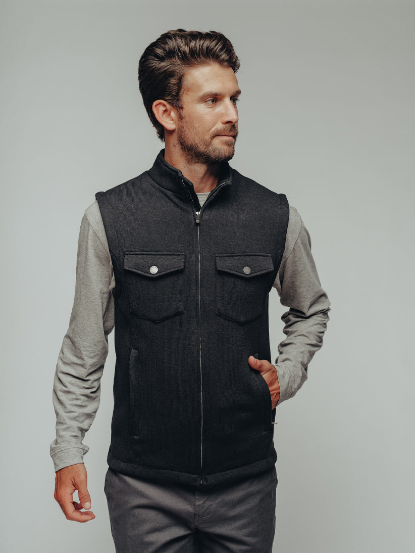We use a melange fleece that keeps you warm and doesn't wear you down. This has been a staple product of ours since the beginning, and we keep bringing it back every year. The double pockets and metal accents give the vest some style, but we really think you will love how you can wear this literally anywhere.
