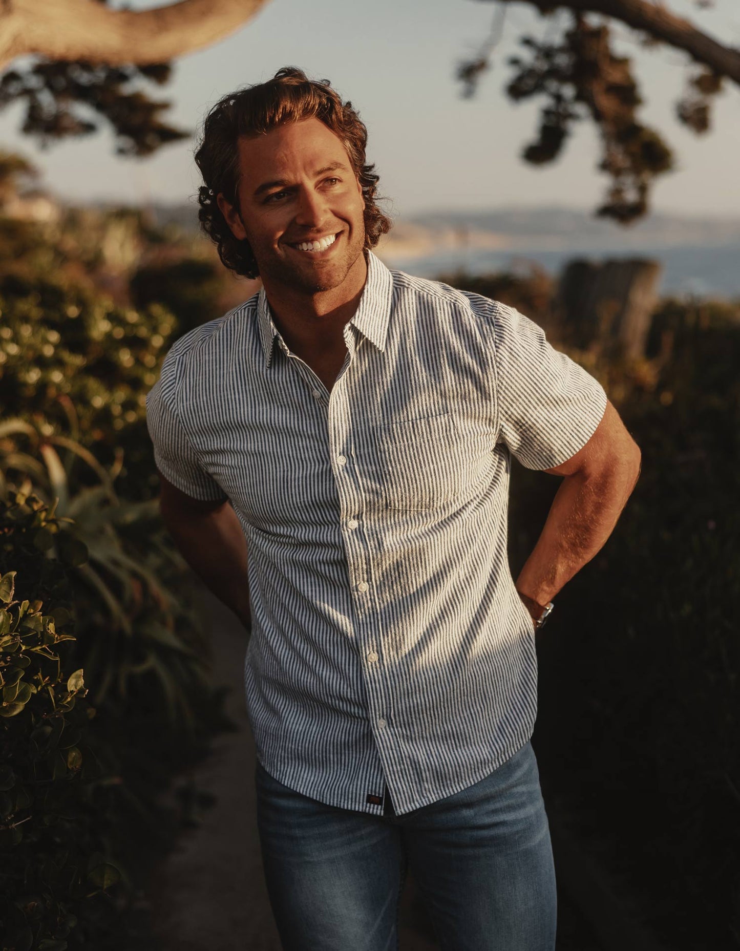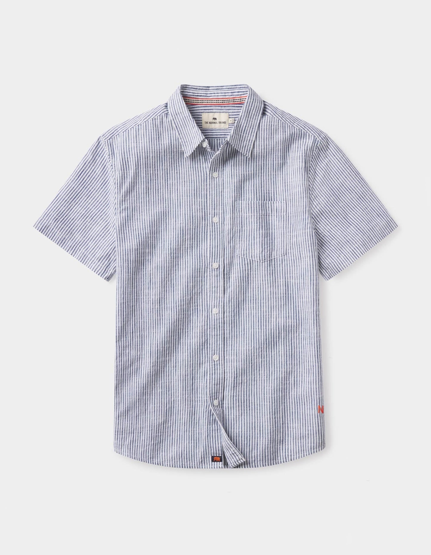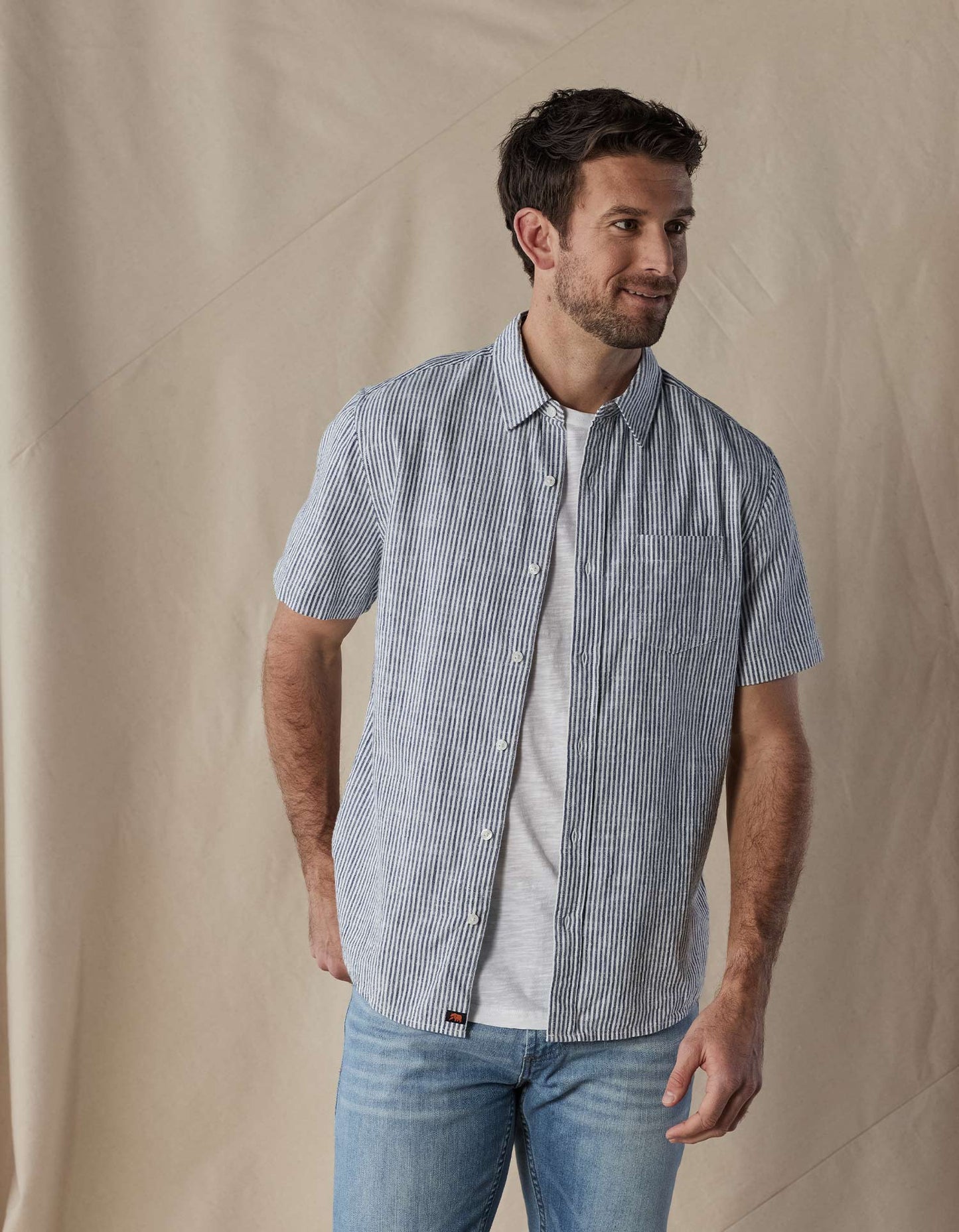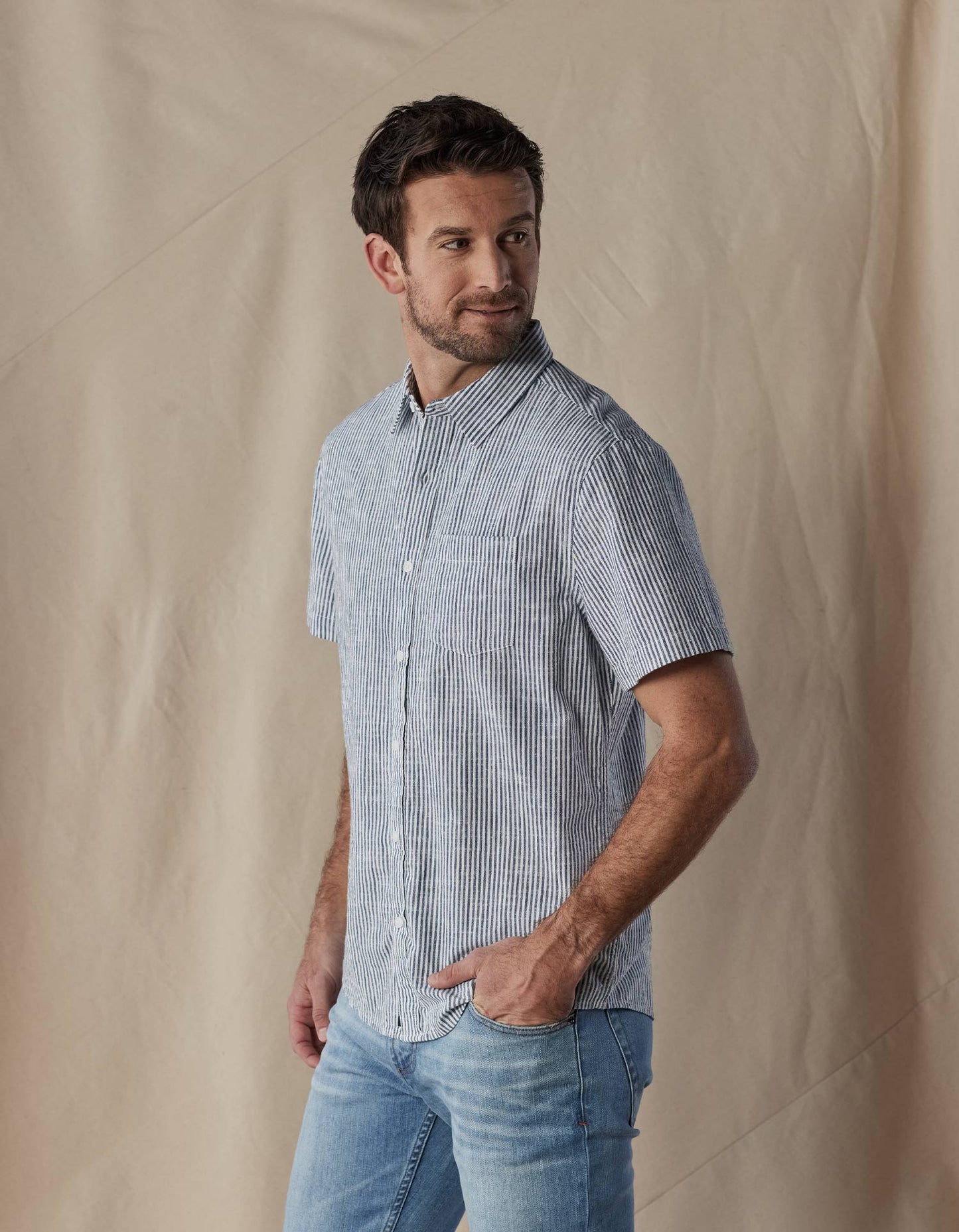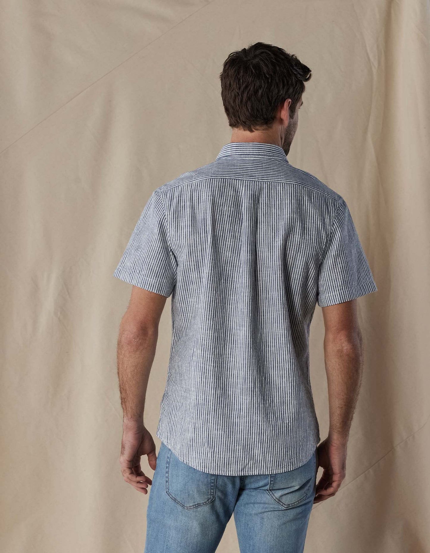 Lived-In Cotton Short Sleeve Button Up in Navy Railroad Stripe