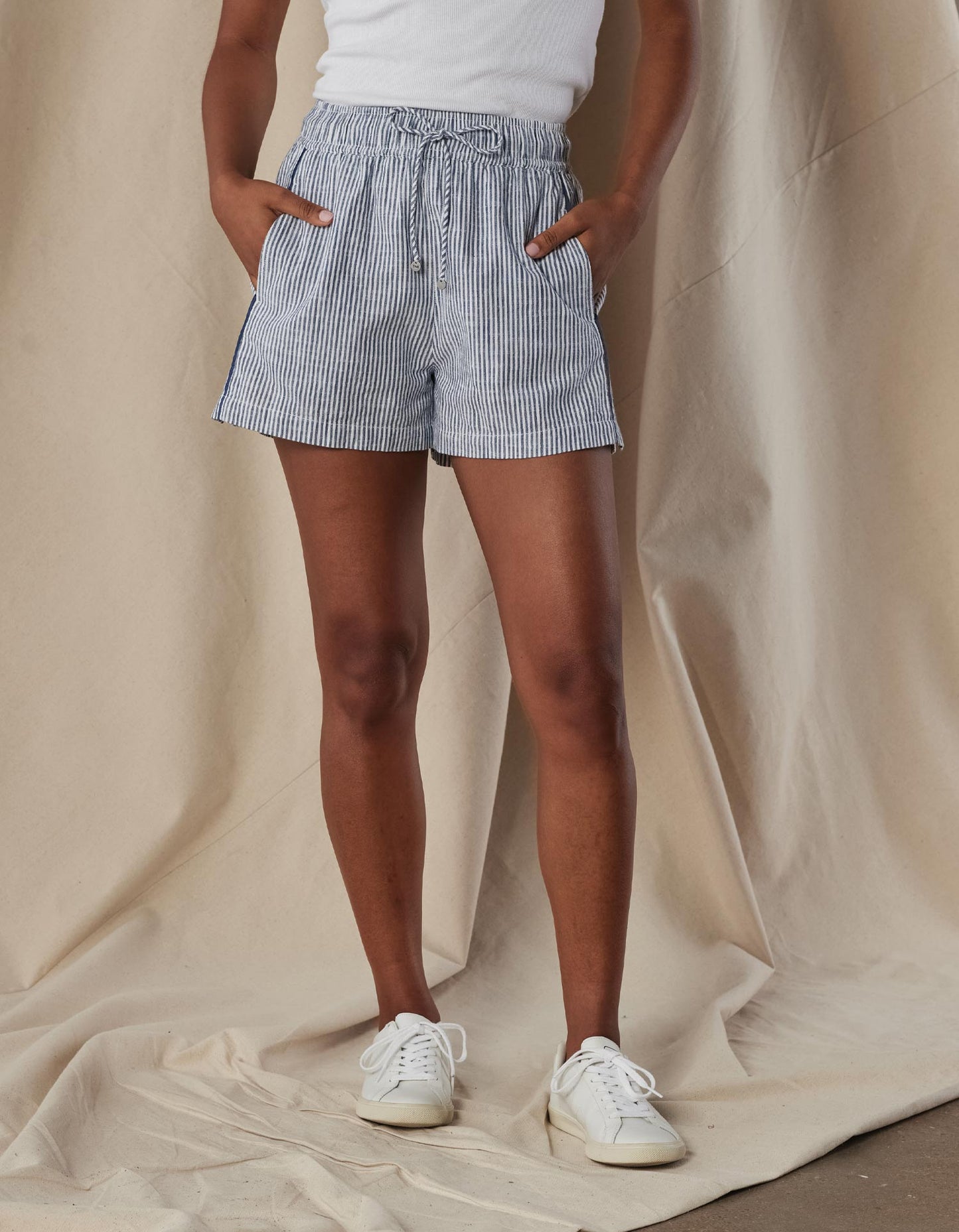 Lived-In Cotton Weekender Short in Navy Railroad Stripe
