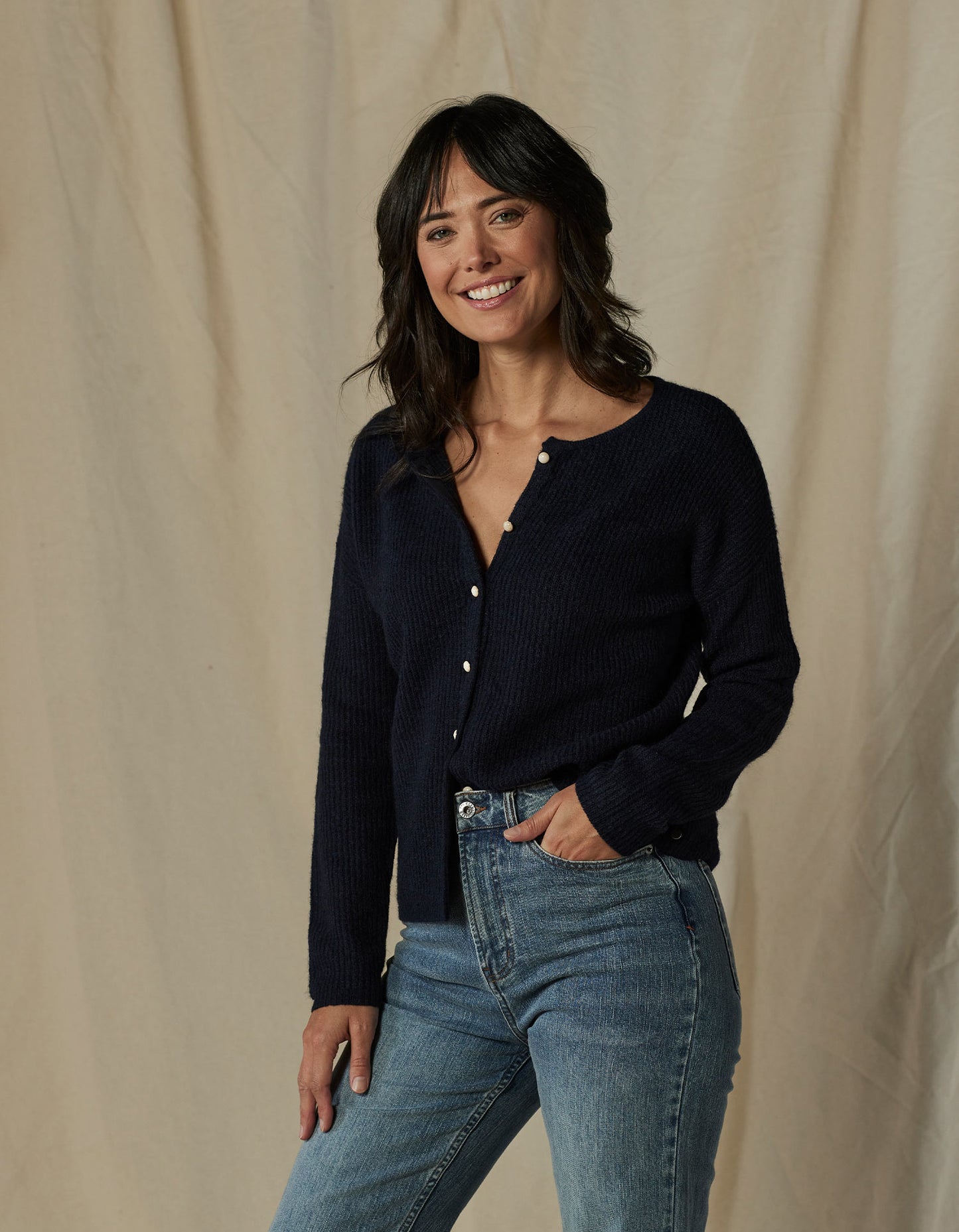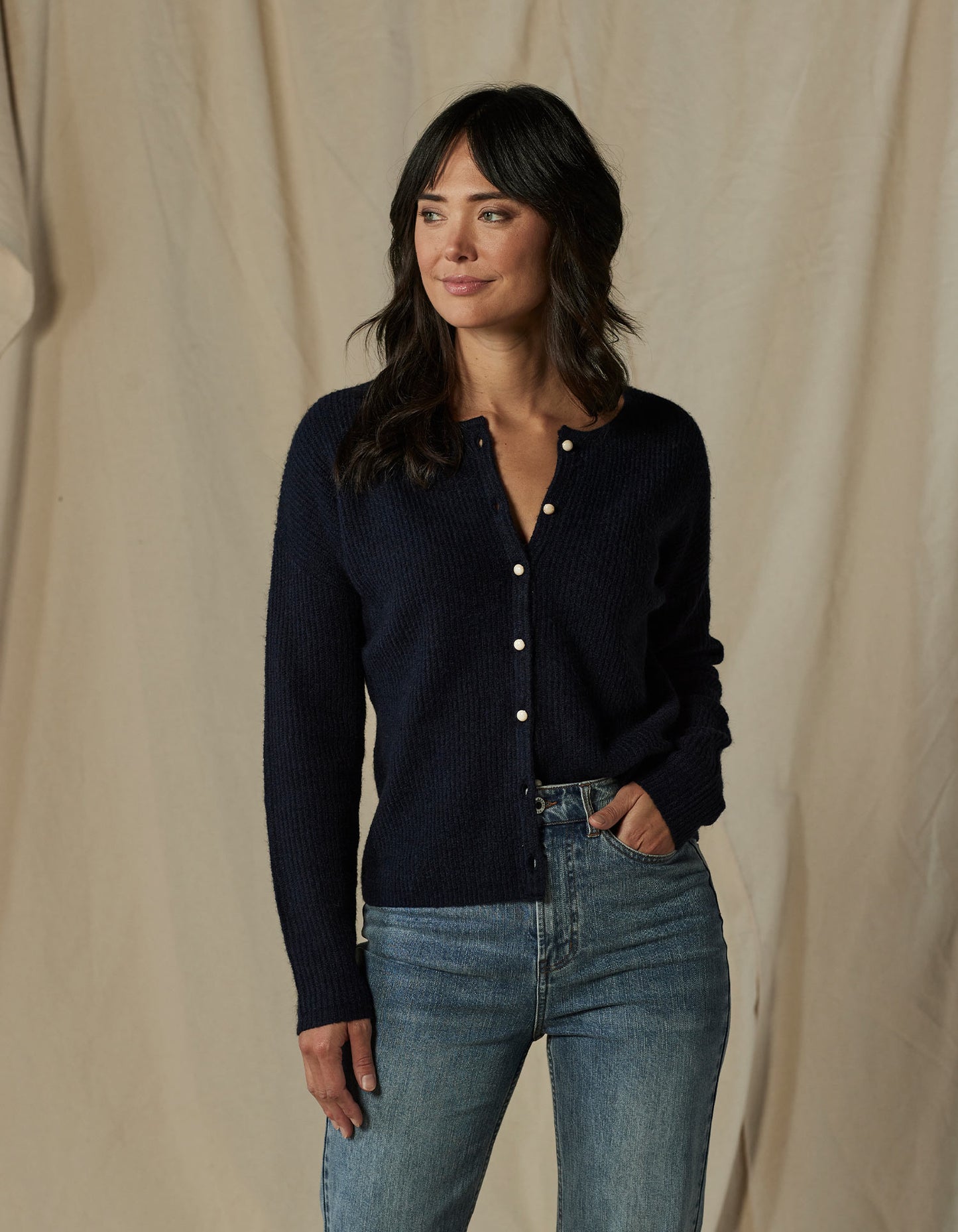 Endless versatility. Our Marianna yarn feels like a soft blanket on your skin. With its warm and fuzzy feel, this cardigan is perfectly cozy, wear after wear. Its relaxed fit hits at high hip for a laid-back yet stylish silhouette. It features a slightly bateau neck shape, a full button front, and dropped shoulders for added comfort and ease. Perfect for layering or wearing on its own, the cardigan adds an element of chicness to your everyday wardrobe,