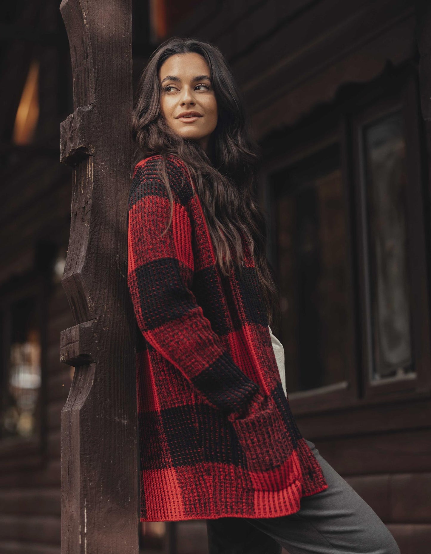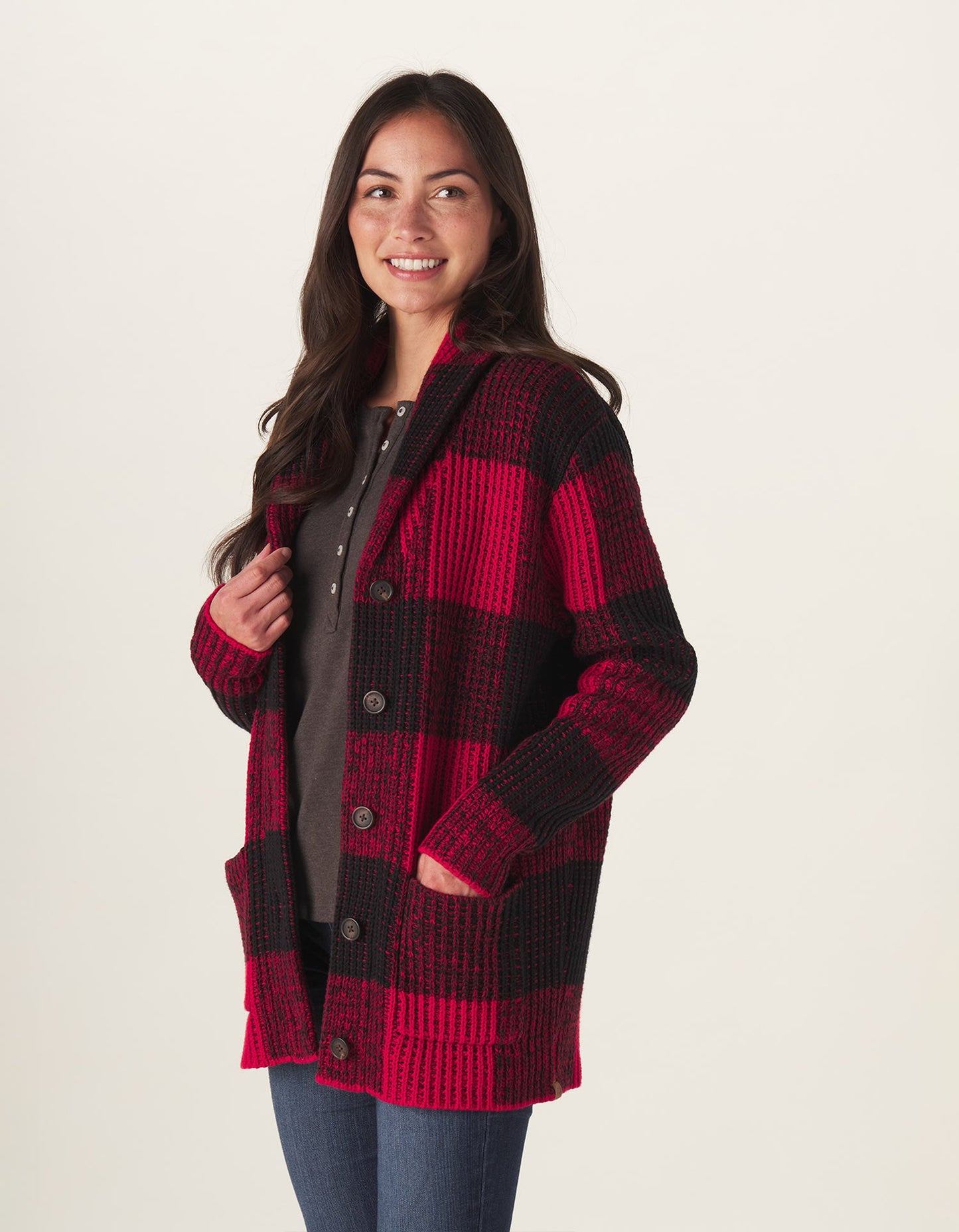 This is the cardigan that was made for cups of coffee by the fire. Wrap yourself in 100% cotton knit buffalo plaid for a classic winter look that's as cute as it is functional. The Mia Heritage Cardigan hits just below the butt, making it perfect to layer with a cute top, leggings, and your favorite pair of boots.