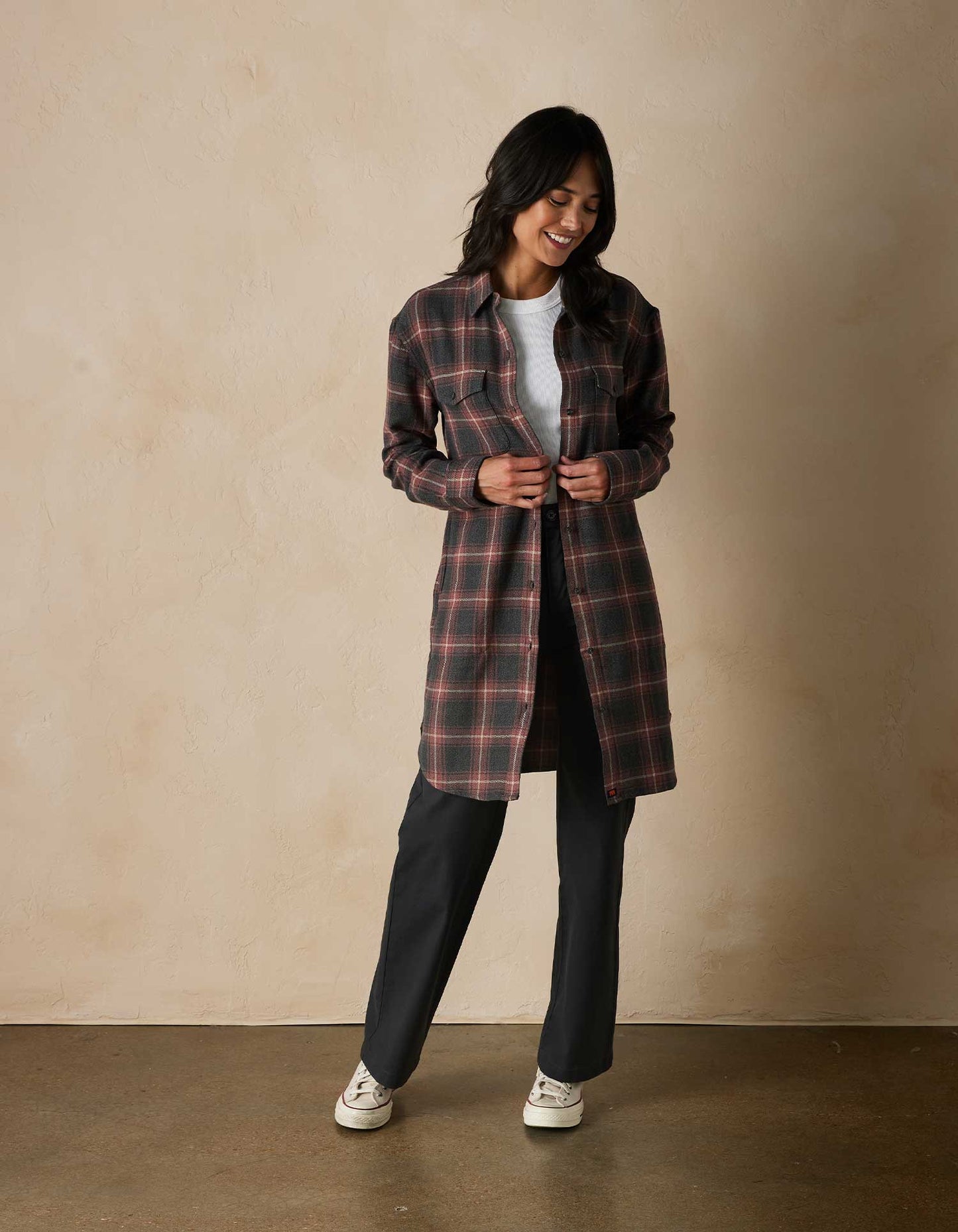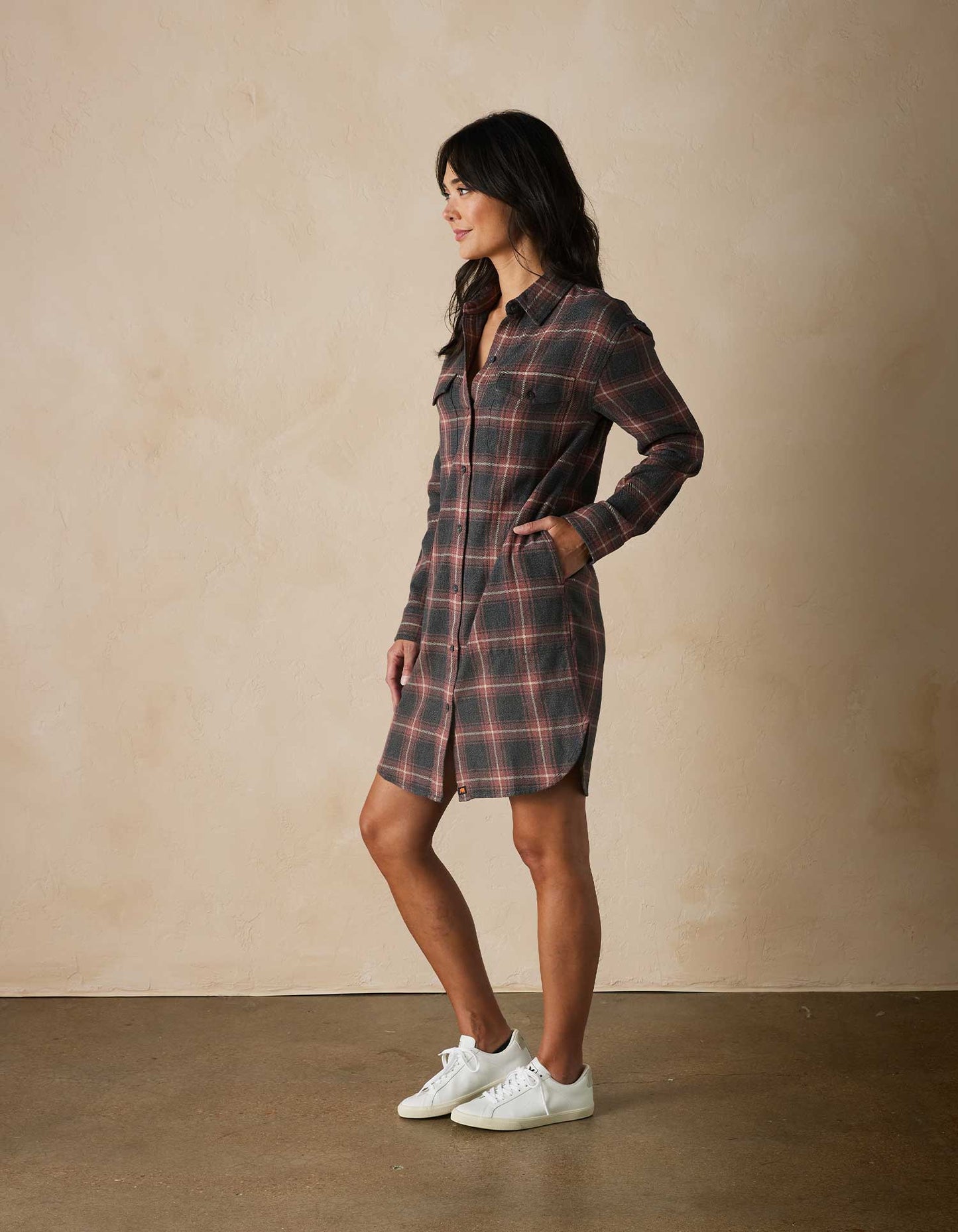 Taking inspiration from the Mountain Overshirt, this dress offers everything you love in a new form. Crafted from 100% cotton, its soft twill creates a luxurious texture that's a treat against your skin. With its mid-weight design, this dress combines comfort and style effortlessly. Featuring chest pockets with flaps and button entry, as well as a shirttail hem, the relaxed fit and slightly dropped shoulder lend a relaxed yet refined look.