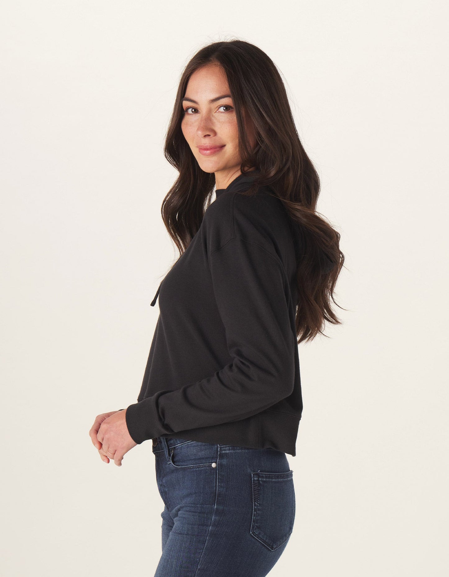Oversized and extra soft, the Puremeso Crop Hoodie is made of our stretchy, curve-hugging Puremeso fabric blend. Wear it over a sports bra after a day at the gym, or under a leather jacket on those cool rainy days. This is a mid-weight hoodie that's great for layering.