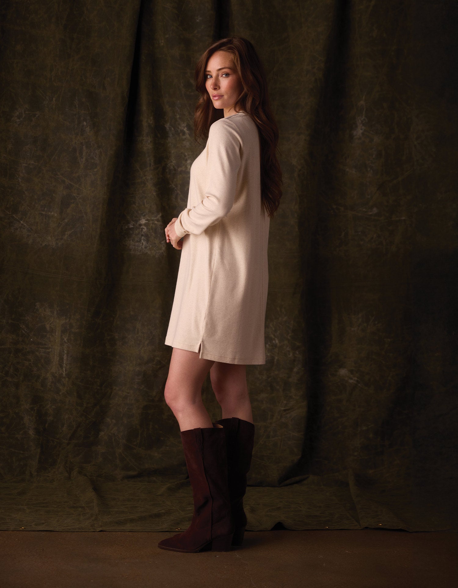 Crafted from our unique and best selling cotton/poly/spandex blend fabric and finished with a special softener, this lightweight dress offers unparalleled comfort and a flattering silhouette. The true inset sleeves and rib appliqué at the shoulder seams add a touch of sophistication to this versatile dress. With a true-to-size fit and a weekender length that includes a slight hi-low hem and side slits, this dress effortlessly combines style and comfort for any occasion.