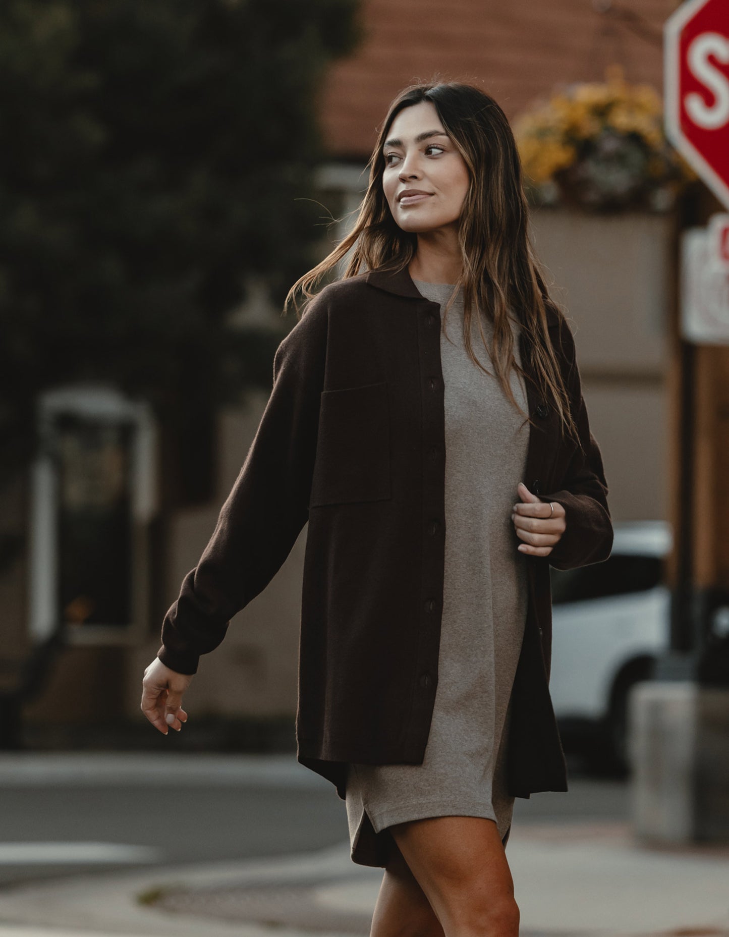 Crafted from our unique and best selling cotton/poly/spandex blend fabric and finished with a special softener, this lightweight dress offers unparalleled comfort and a flattering silhouette. The true inset sleeves and rib applique at the shoulder seams add a touch of sophistication to this versatile dress. With a true-to-size fit and a weekender length that includes a slight hi-low hem and side slits, this dress effortlessly combines style and comfort for any occasion.