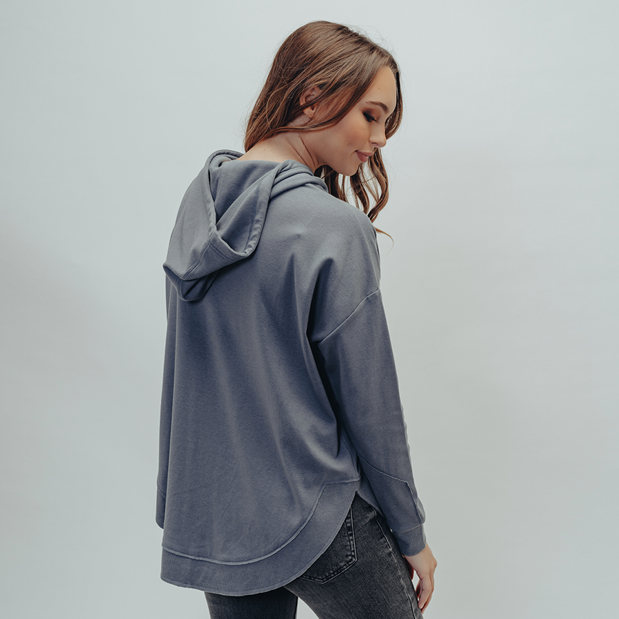 One of our personal favorites - this versatile hoodie works as a layering piece or stands strong on its own with sleeve panel details, a shirttail hemline, and sewing craftsmanship.