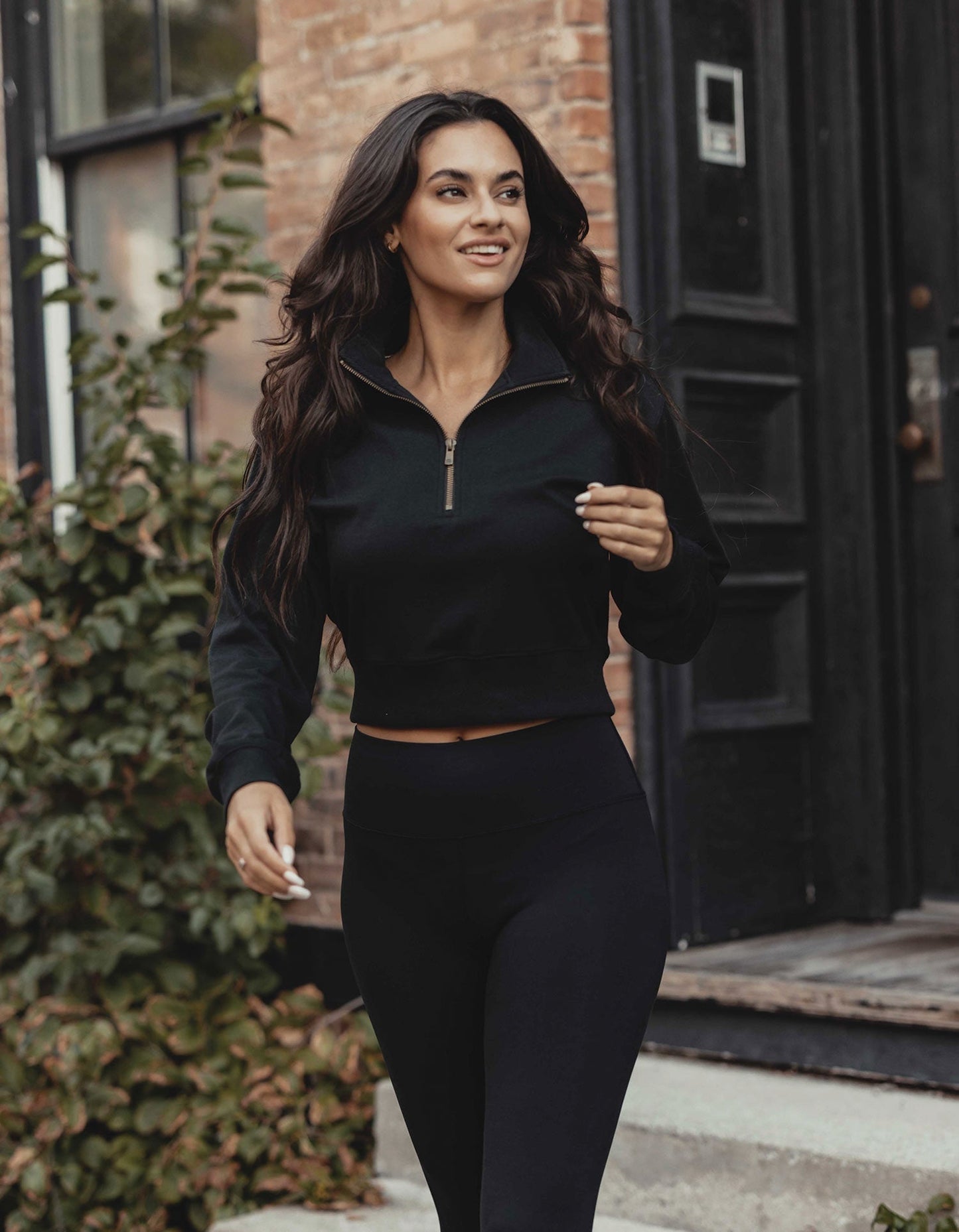 Snuggle up into this buttery-soft thick and cozy half-zip jacket. Made with our own blend or Puremeso cotton, it's just the right amount of stretchy, while still being polished enough to run to the store in. This pullover jacket hits at the top of the hip, making it perfect with a pair of high rise leggings or biker shorts.