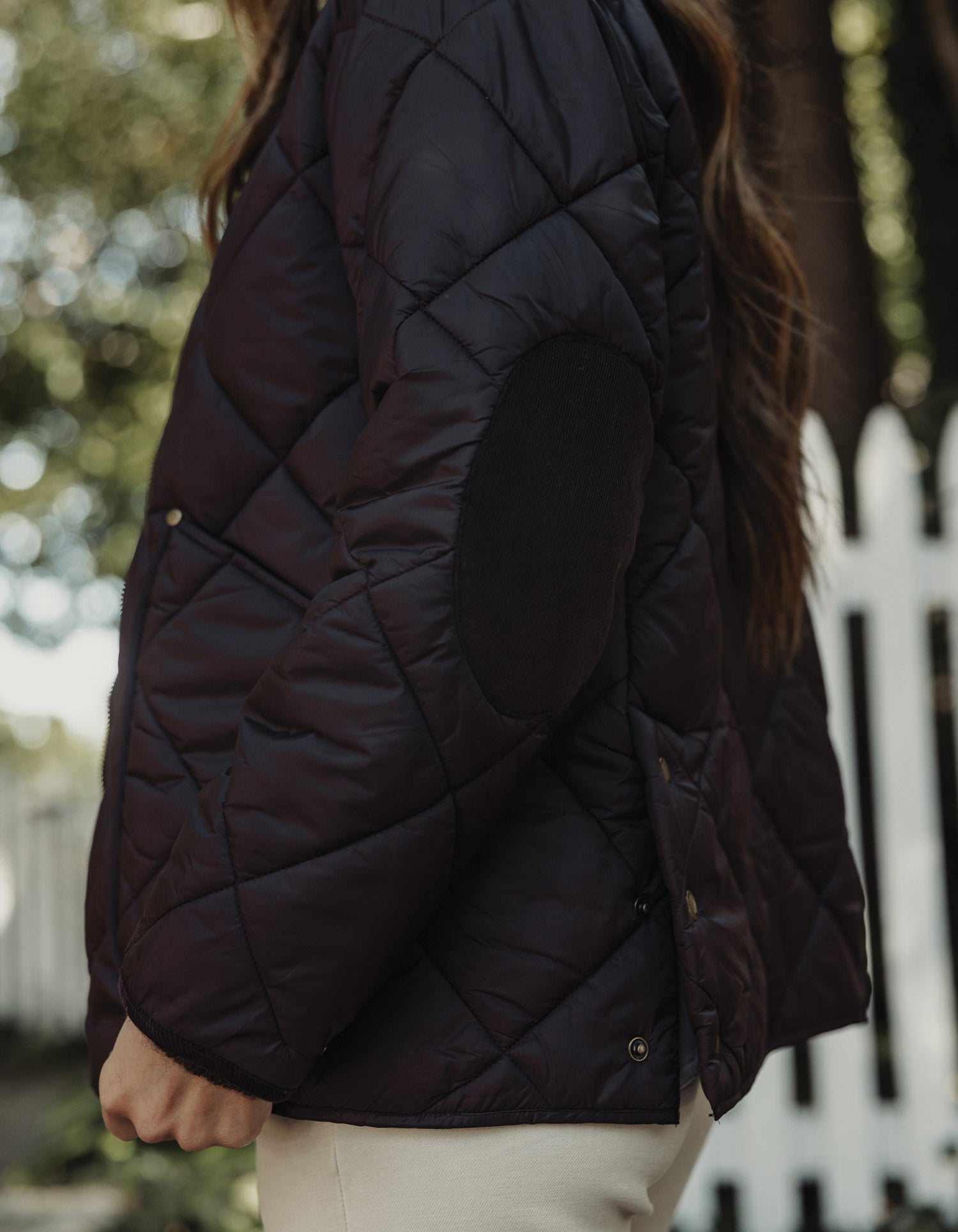 Corduroy inside stand collar. Large diamond quilting. Full snap front. Corduroy underplacket. Asymmetric patch body pockets. Functional snap back vents. Inside cell phone pocket. Signature tape hanger loop. Engraved outerwear snaps.