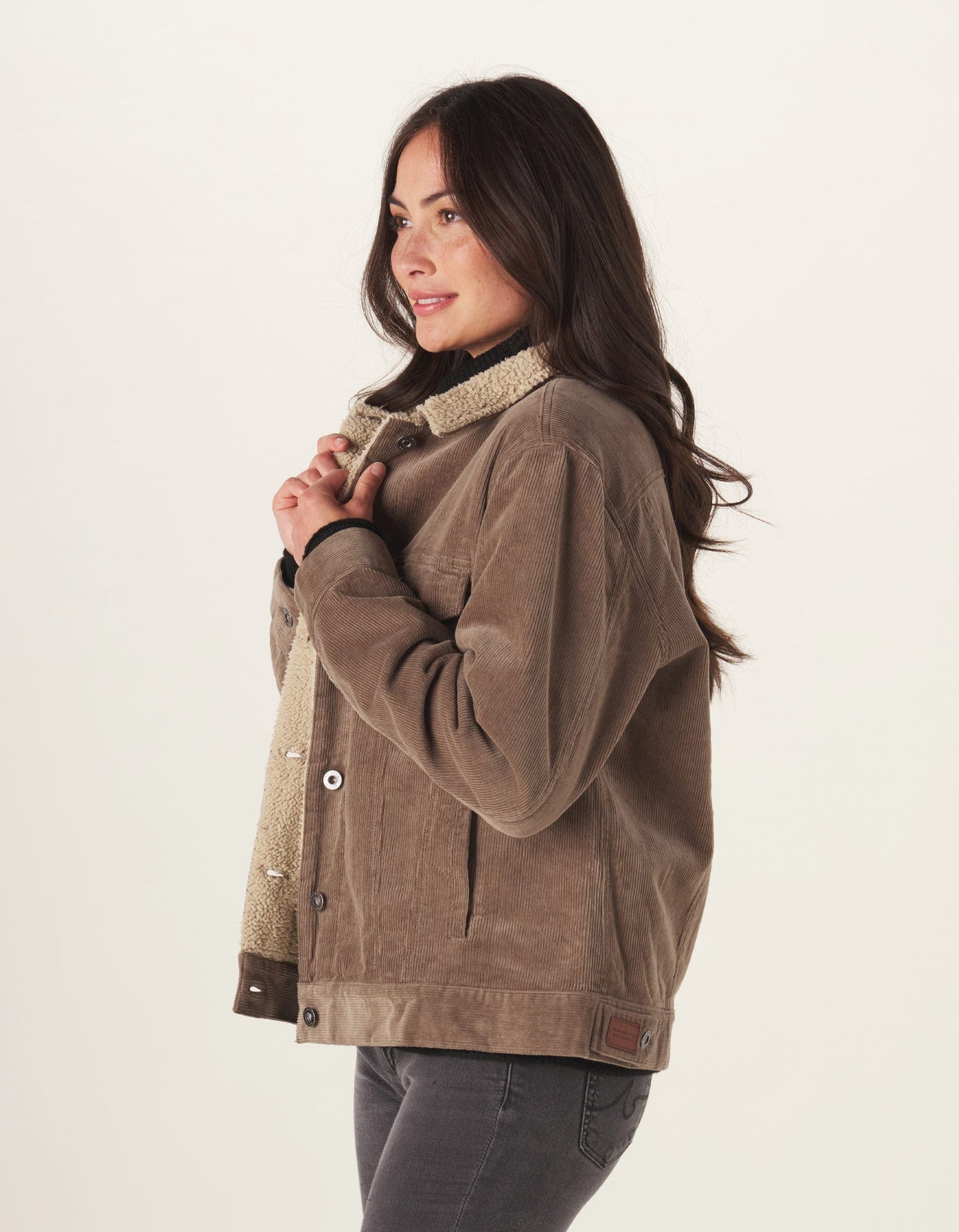 A cult classic with a TNB essence, this heavy corduroy jacket is an oversized fit with slightly dropped shoulders, a sherpa collar and lined bodice, denim shank buttons, and classic trucker style lines and construction. Warm enough to be practical, and with a stylish vintage vibe that goes with everything, this one will quickly become a fall staple.