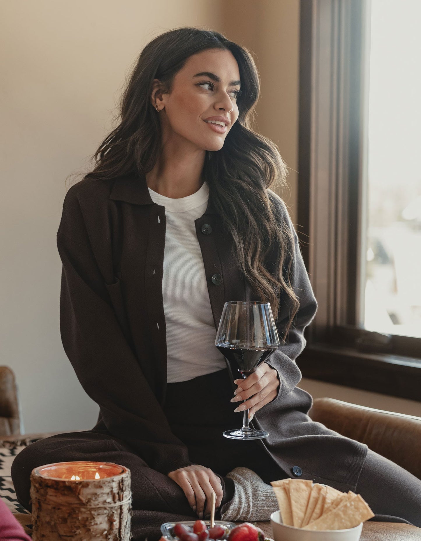 Crafted with a luxurious midweight yarn that offers a slinky, stretchy texture, this shacket provides an unparalleled feel of comfort and flexibility. Its oversized fit exudes an effortless style that hits below the hips, creating a flattering silhouette for all body types. Whether you're unwinding at home or stepping out for a casual day, the Taylor Sweater Shacket is the go-to choice for a chic yet comfortable look that suits any occasion. Pairs well with the Taylor Sweater Pant.