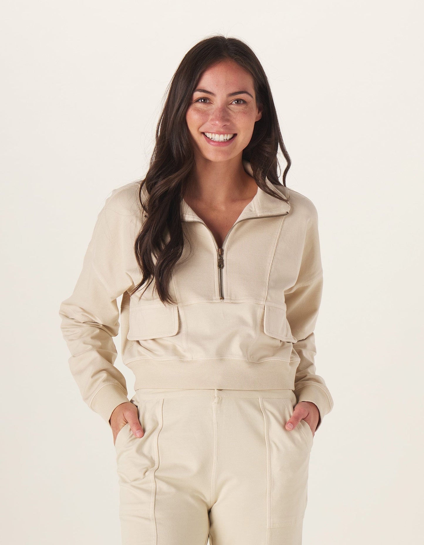 Structured, soft, and modern, the Tentoma Utility Half Zip jacket is perfect for throwing over a gym top or a t-shirt. Wear it to the airport for a fashion forward comfortable layering look, or throw it on after you sweat it out at the gym. The fabric is ultra durable without being too stiff, with a washed vintage look you'll love.