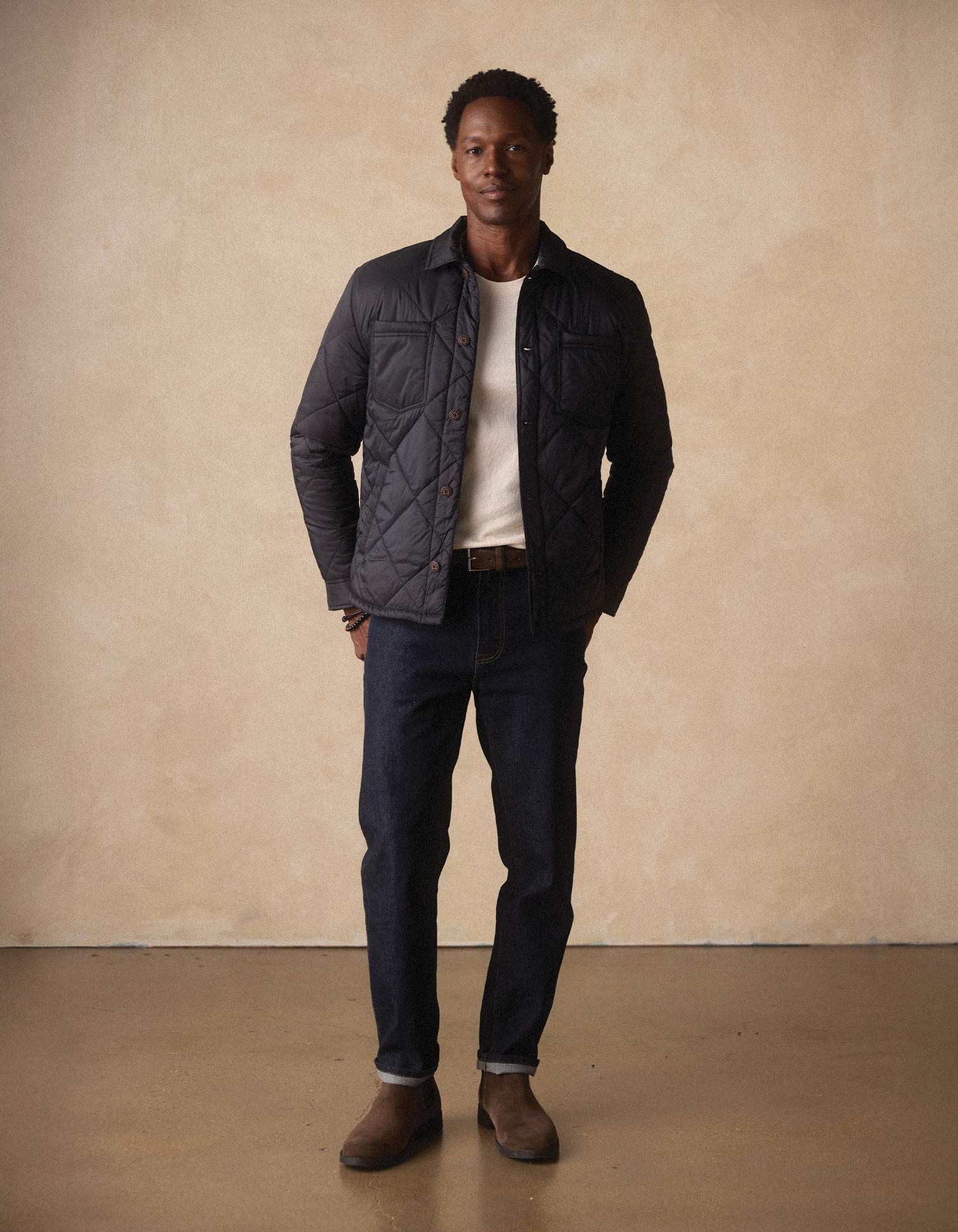 The Only Jacket lives up to its name—built to be your go-to all season long. It pairs a slick quilted puffer shell with warm insulation and an ultra-soft sherpa fleece lining for unbeatable comfort. Designed with a shirt-style collar, chest patch pockets, adjustable cuffs, and faux wood buttons, this layer blends rugged functionality with easygoing style.