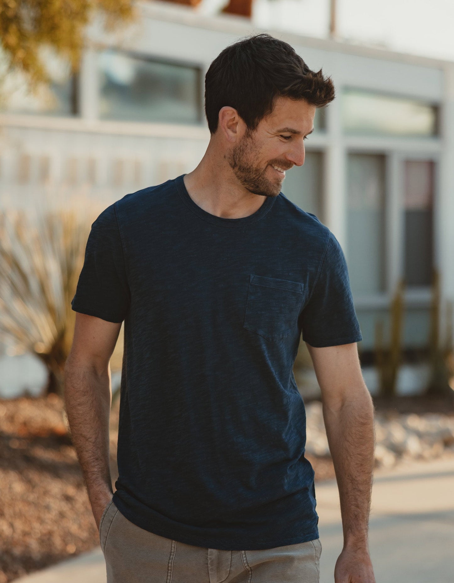 Get the worn-in vintage look, without the weird smells. The vintage slub pocket tee is soft right off the rack, with a heat-transferred label that won't scratch and irritate. Built with an athletic fit, and just the right amount of rugged.