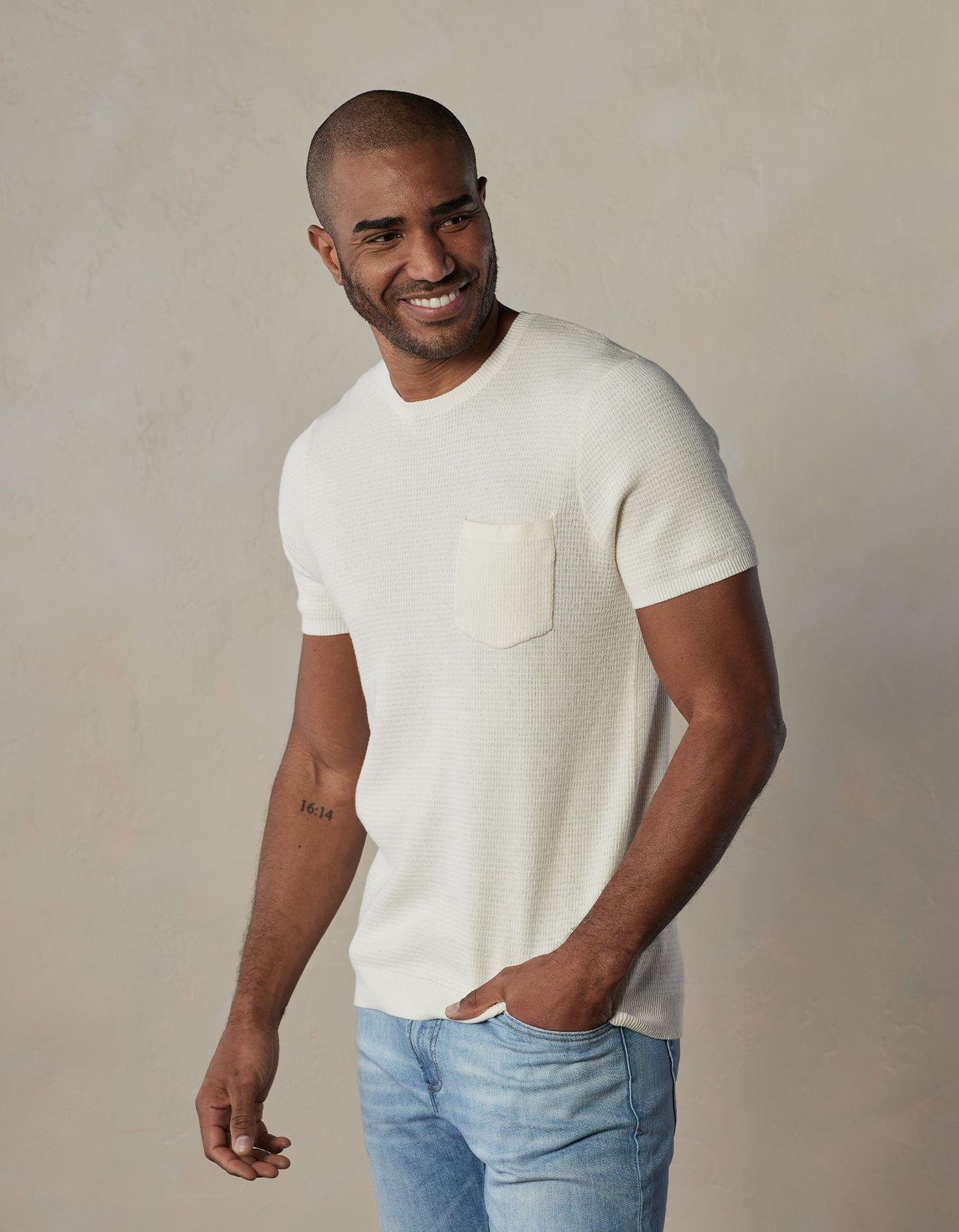 An elevated take on a classic silhouette. Crafted with a classic waffle stitch that's exceptionally lightweight and breathable. The fine Cotton knit is textured yet soft to the touch for all day comfort, and we added a chest pocket for an old school look.